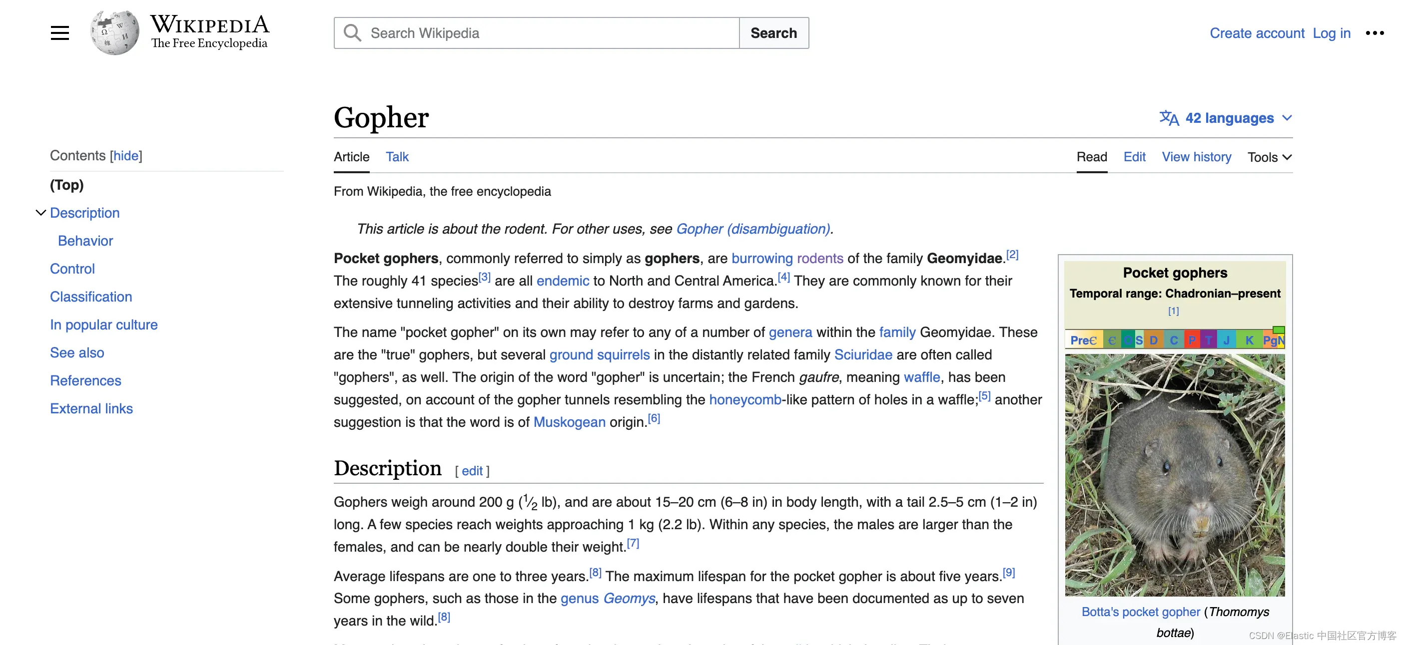 - 创建您自己的 Elasticsearch 集群,其中填充了一组基于啮齿动物的页面,包括来自维基百科的我们友好的 Gopher: