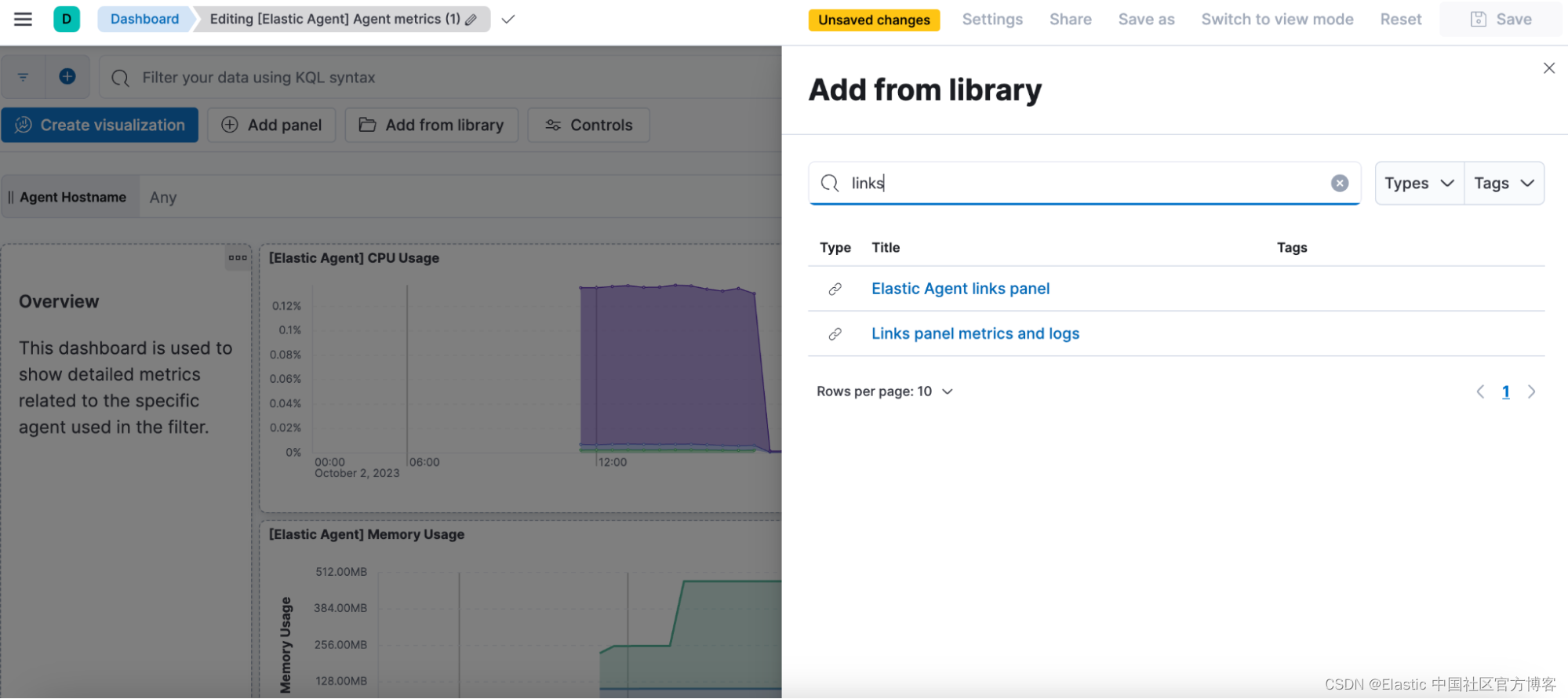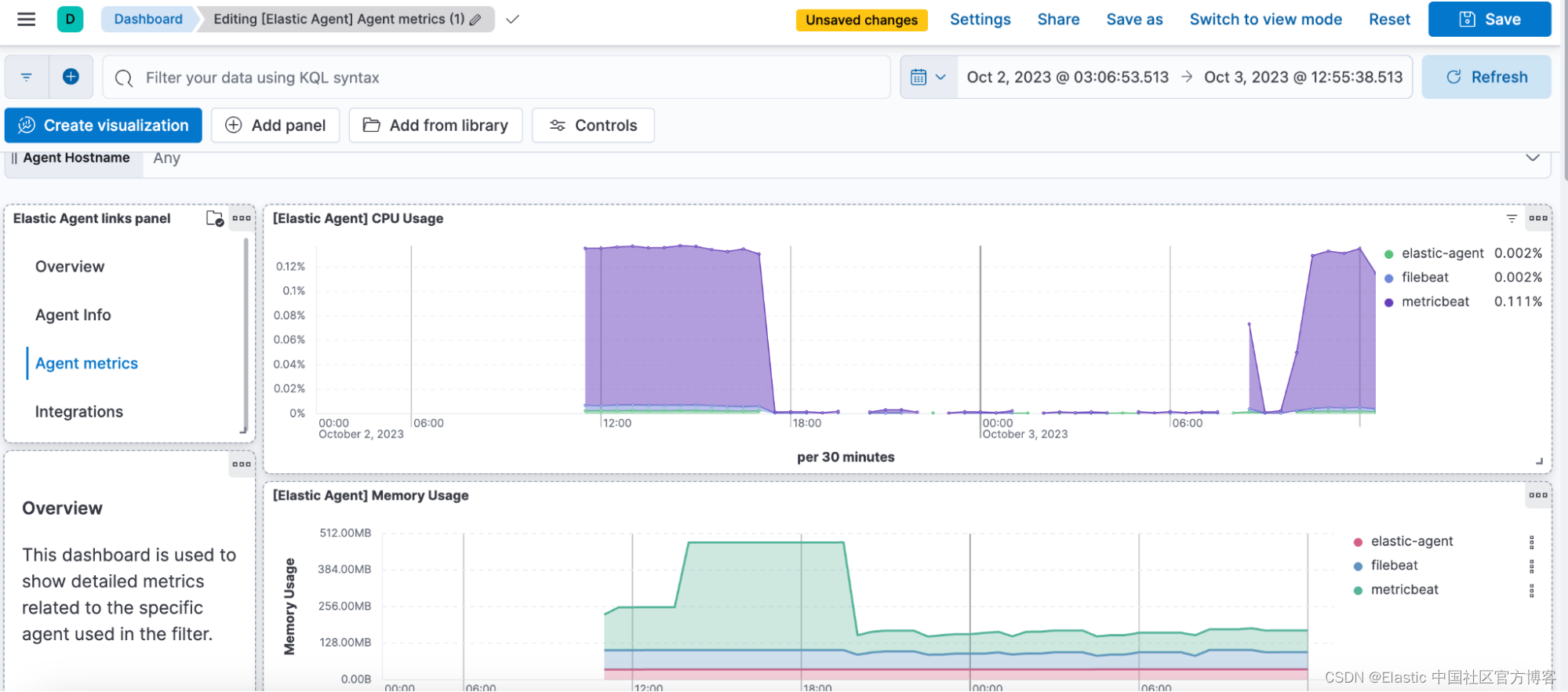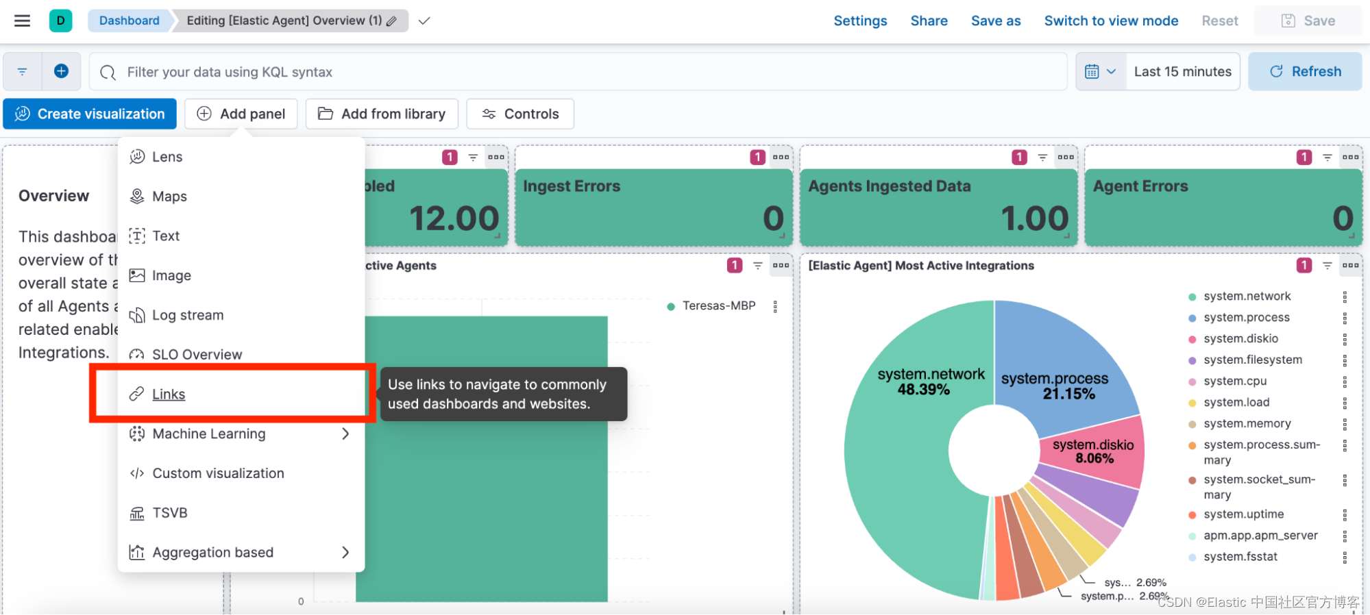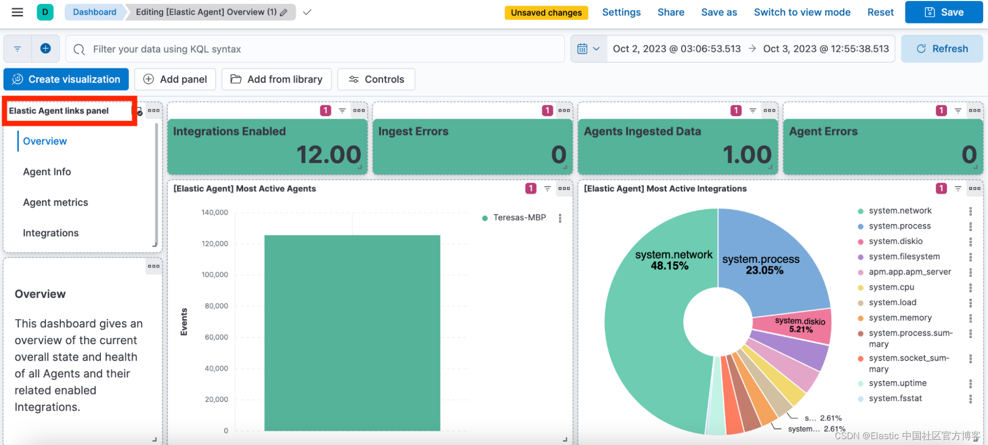 在本文中,我们将展示如何创建链接面板来链接安装 Elastic Agent 时默认提供的四个不同仪表板。 这些仪表板包含 Elastic Agent 收集的不同指标,用户通常需要从一个仪表板导航到另一个仪表板。