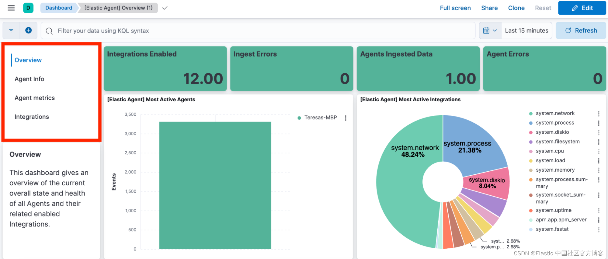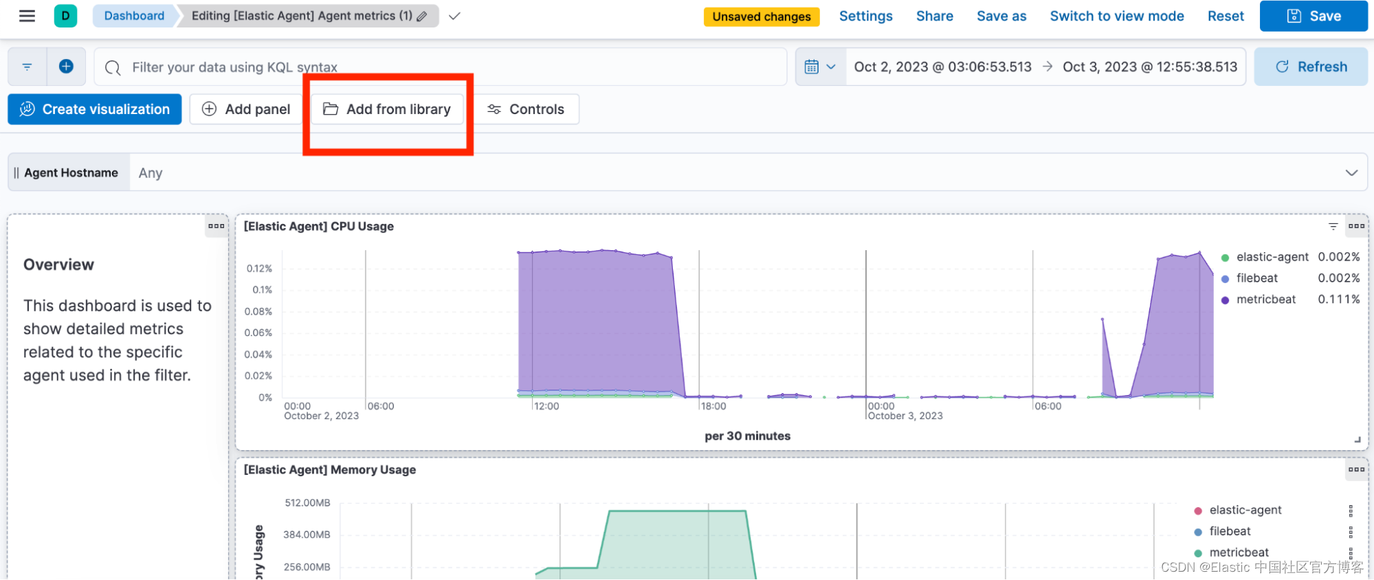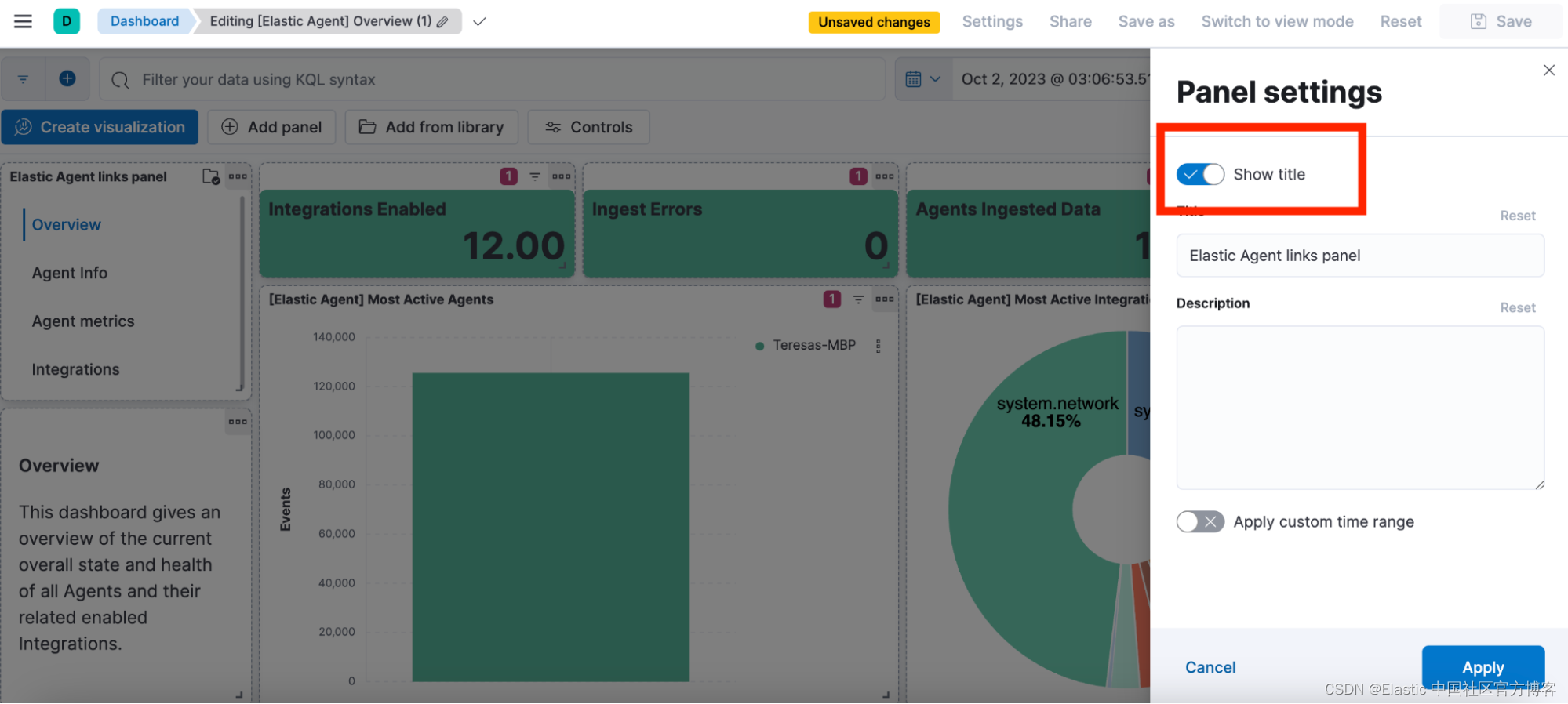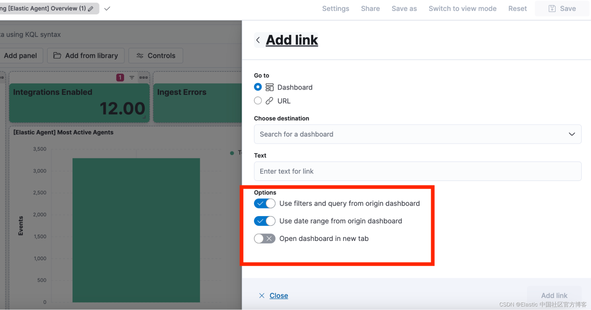 在本文中,我们将展示如何创建链接面板来链接安装 Elastic Agent 时默认提供的四个不同仪表板。 这些仪表板包含 Elastic Agent 收集的不同指标,用户通常需要从一个仪表板导航到另一个仪表板。