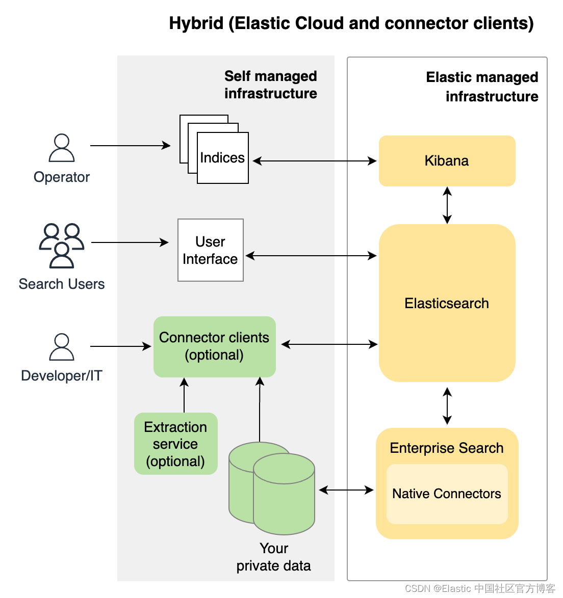 两个选项:Elastic Cloud 上的原生连接器或自托管客户端