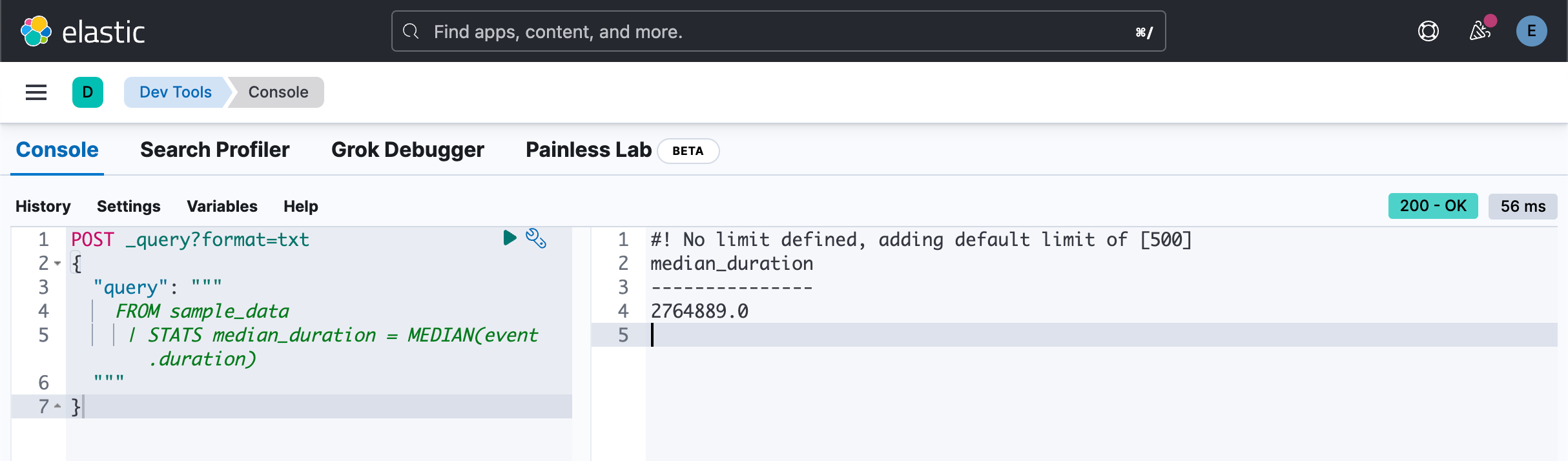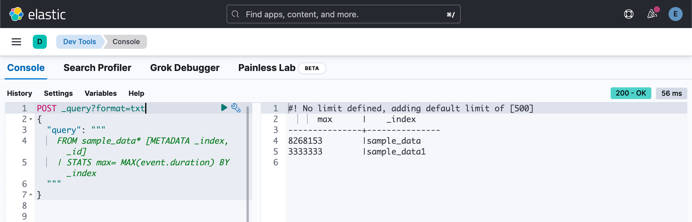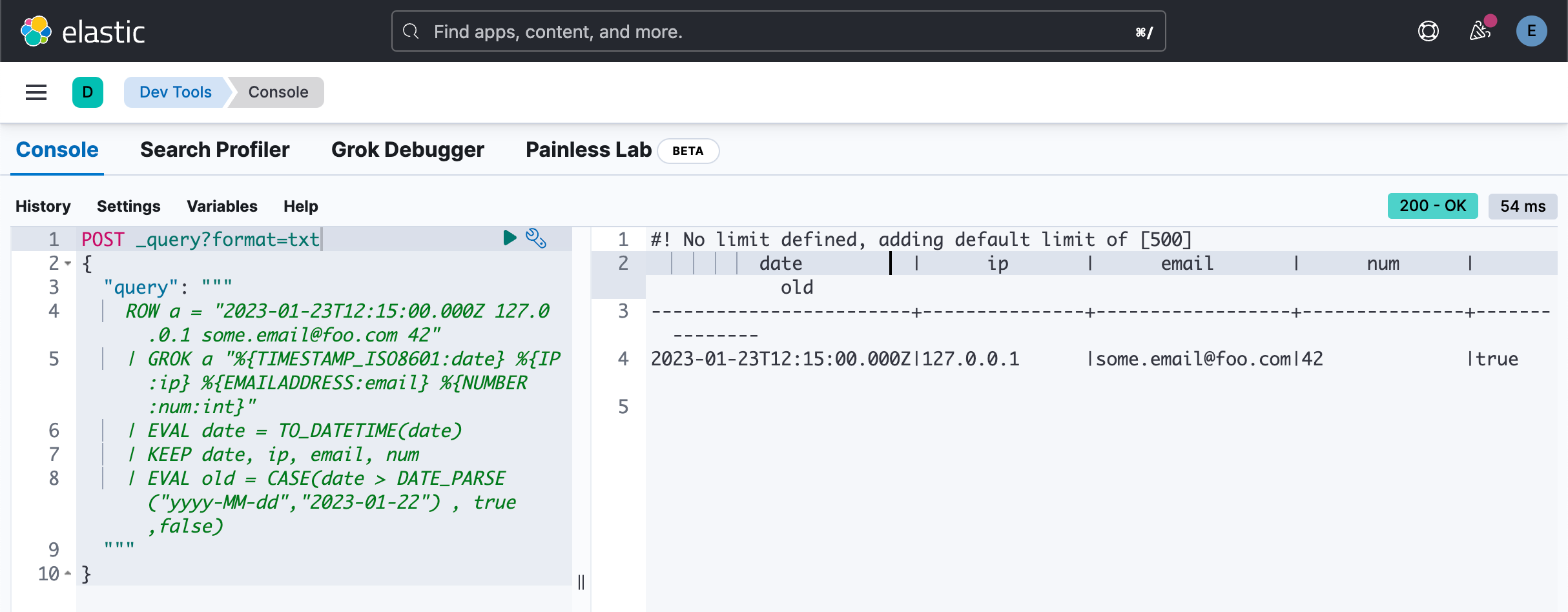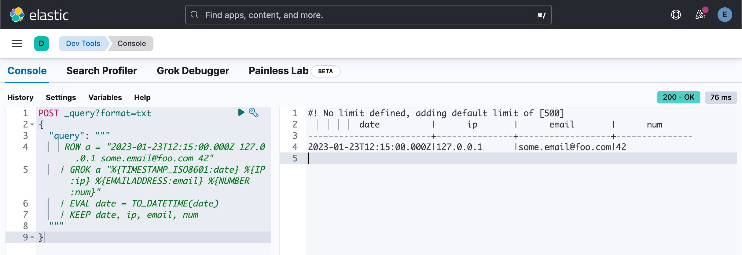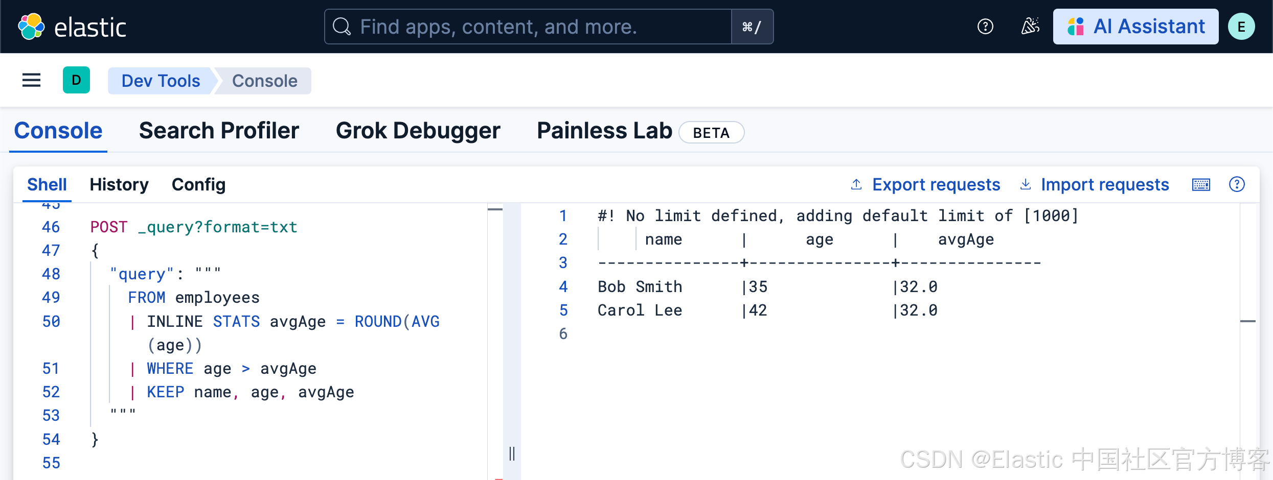 我们需要在 Kibana 的界面中,进入到 Dev Tools。通常一个 ES|QL query API 的命令格式是这样的: