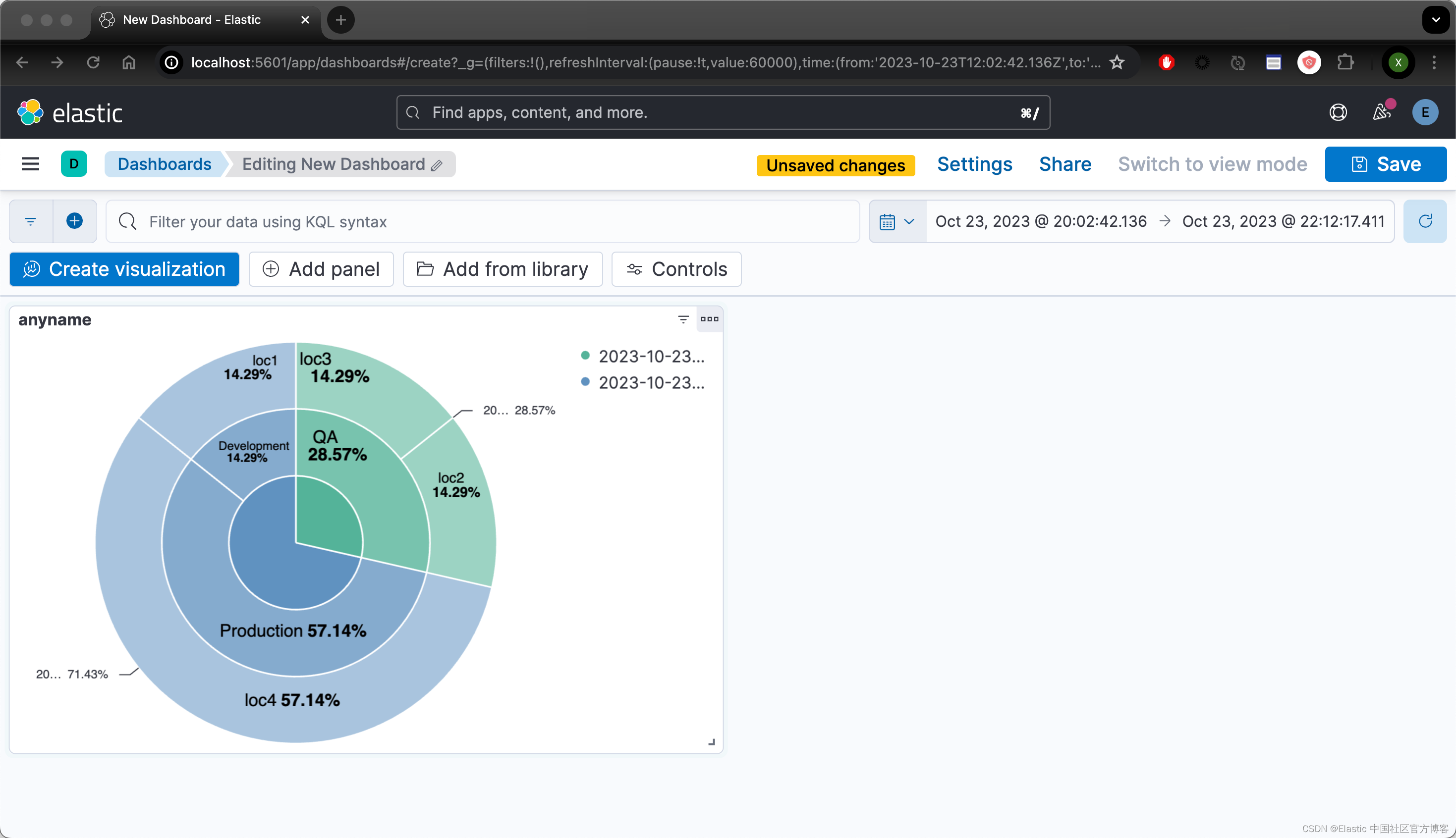 我们看到的是一个可视化化图。它是一个饼图,我们可以把它保存到可视化中,并最终被 Dashboard 所示使用: