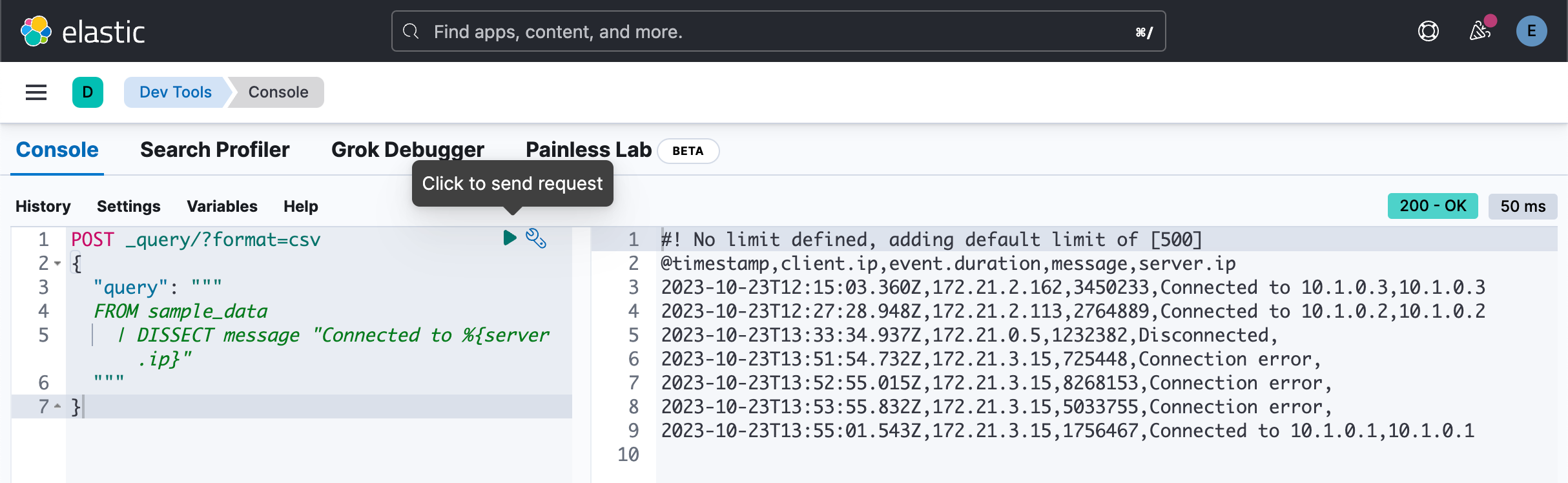 {"@timestamp": "2023-10-23T13:55:01.543Z", "client.ip": "172.21.3.15", "message": "Connected to 10.1.0.1", "event.duration": 1756467}
