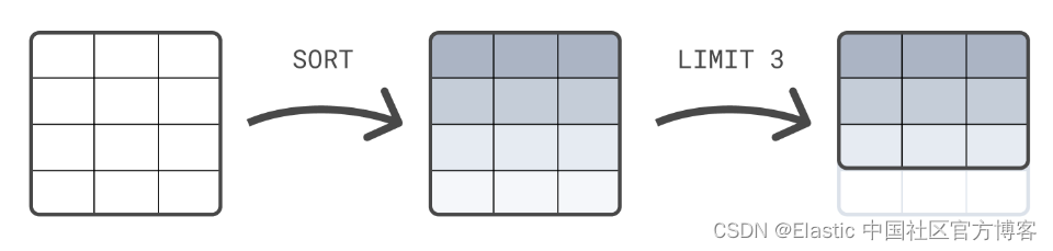默认情况下,ES|QL 以行 (row) 形式返回结果。 例如,FROM 将每个单独的文档作为一行返回。 对于 json、yaml、cbor 和 smile 格式,ES|QL 可以以列方式返回结果,其中一行代表结果中某一列的所有值。