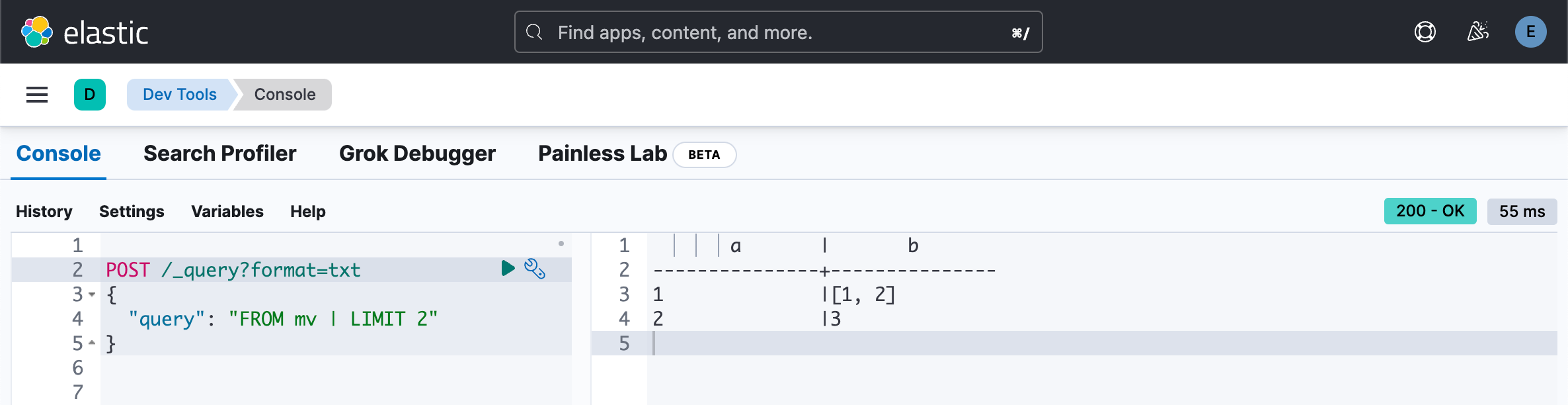 "query": "FROM mv | LIMIT 2"