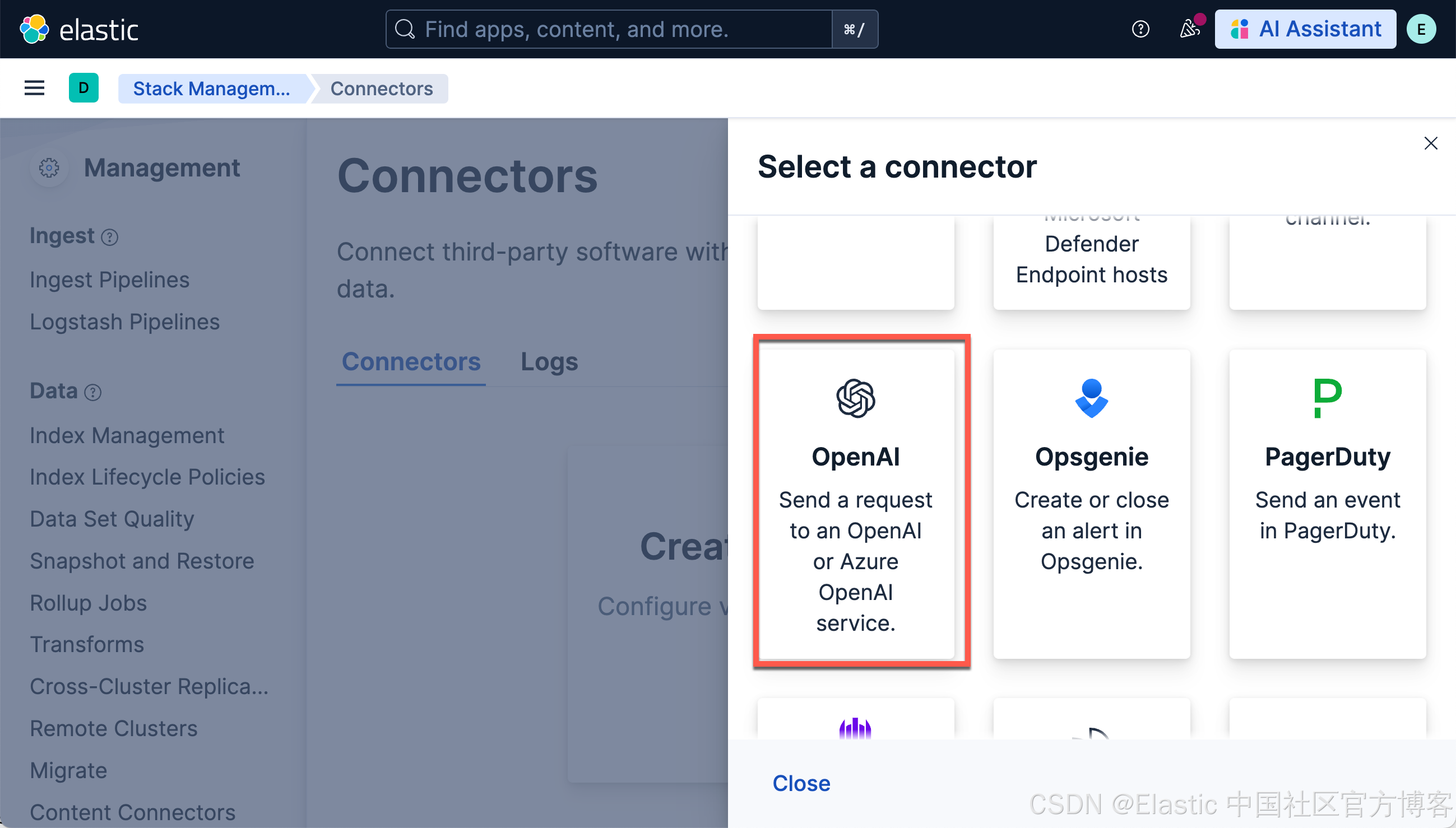 我们选择 OpenAI。参考我之前的文章 “Elasticsearch:在 Elastic 中玩转 DeepSeek R1 来实现 RAG 应用”。我们使用 DeepSeek R1 来进行: