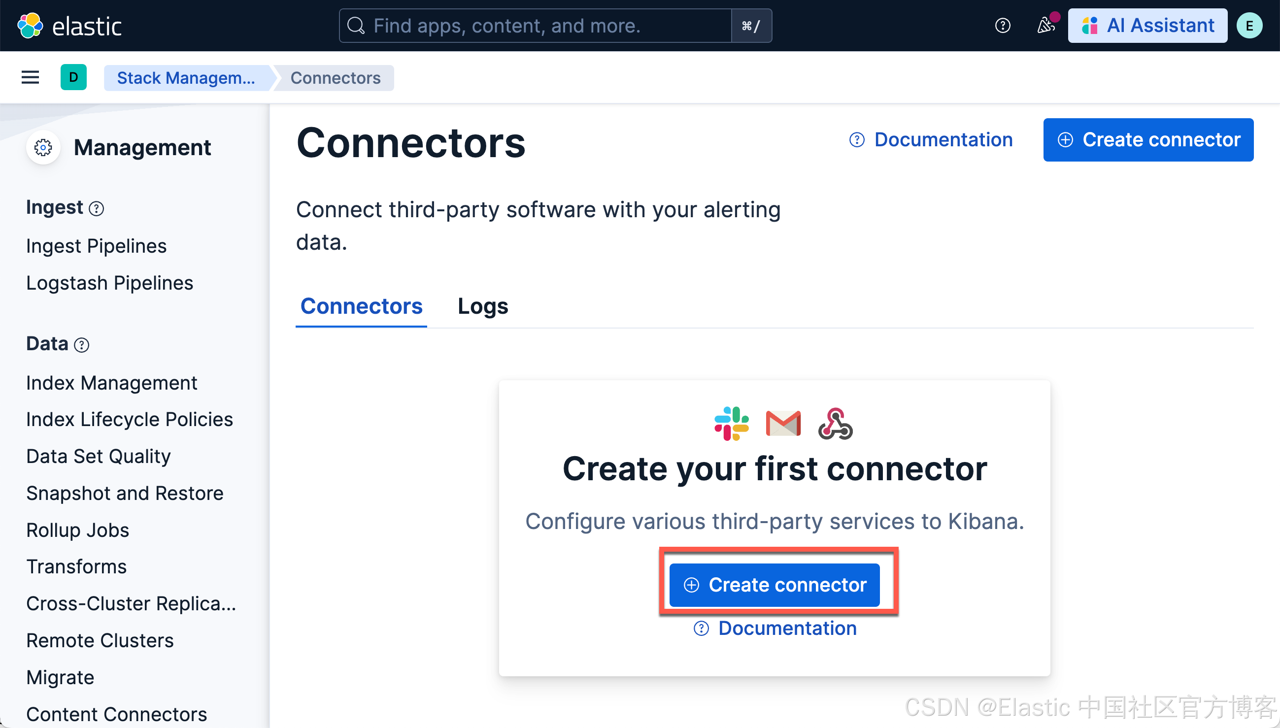 如上所示,我们点击 Create connector: