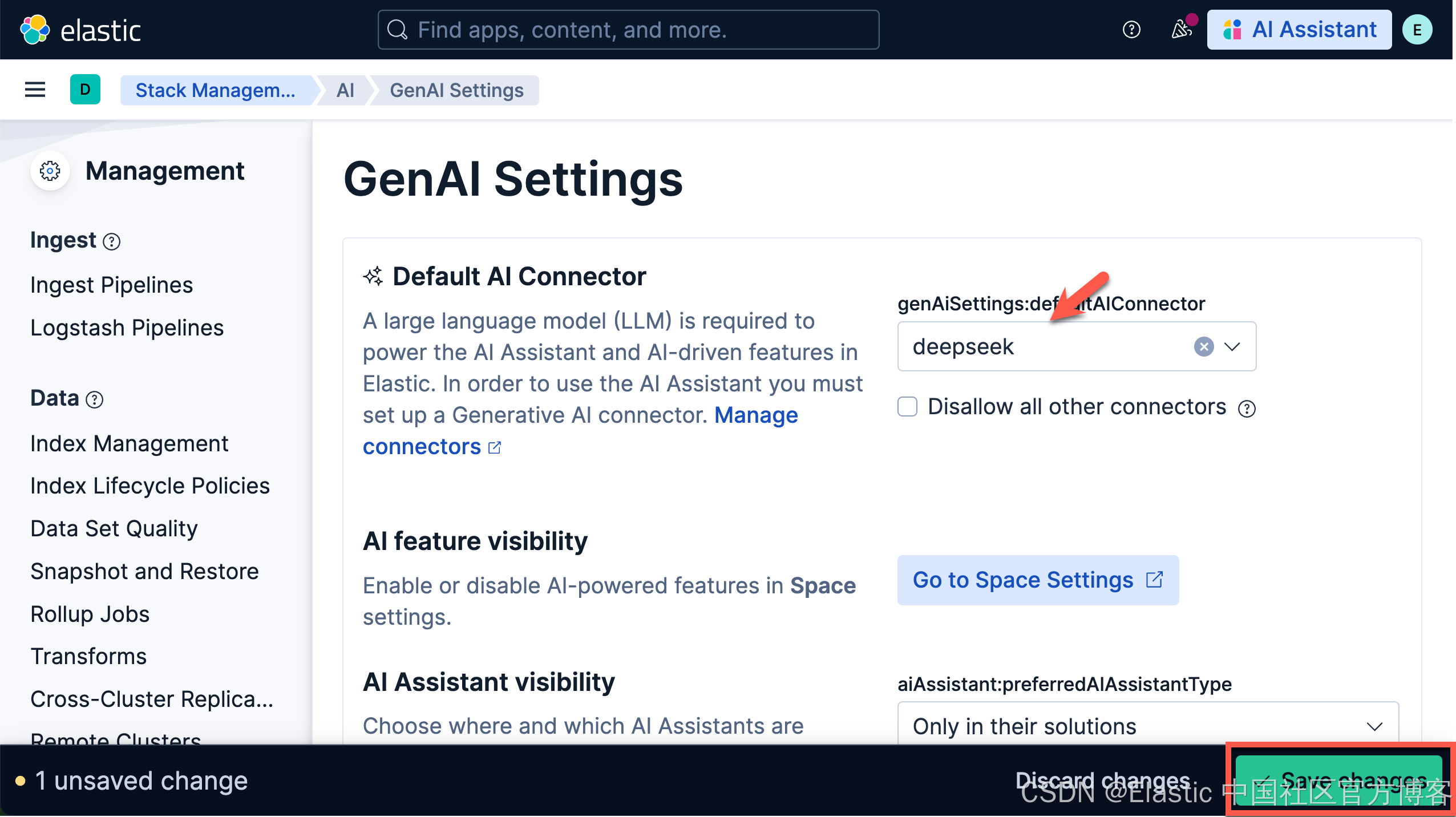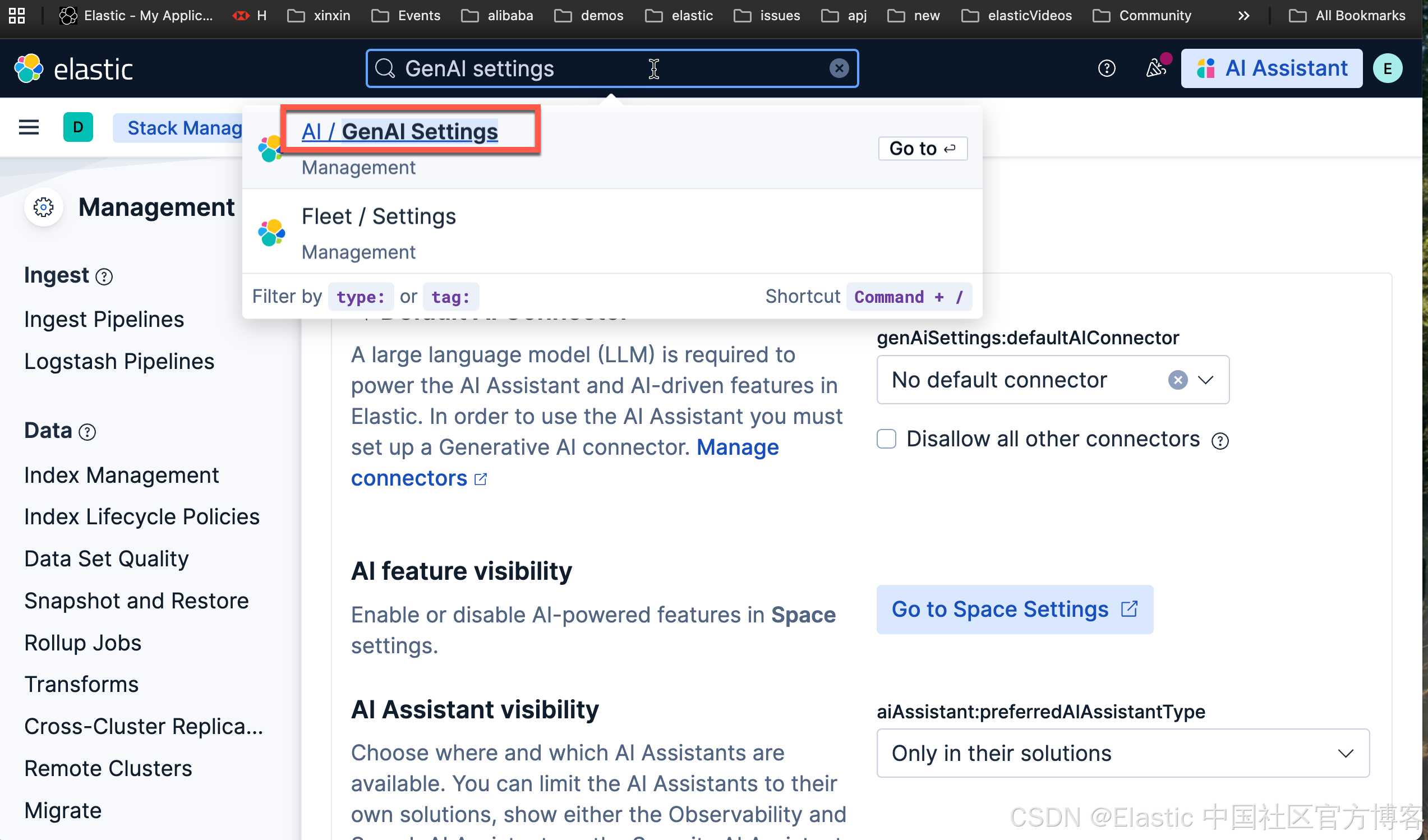 我们在 Kibana 中搜索 GenAI Settings: