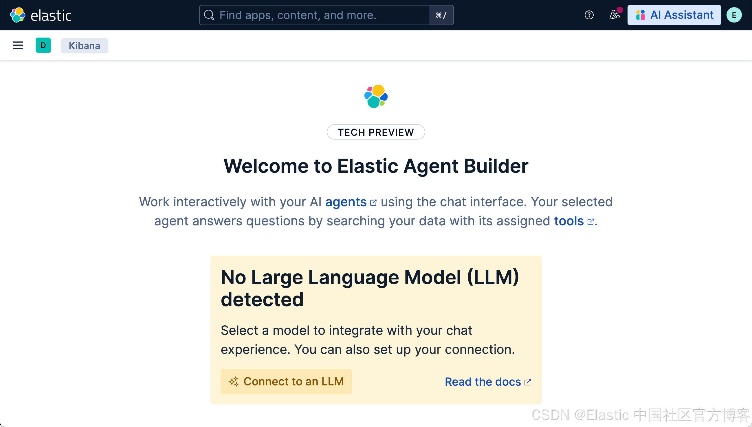 它表面,我们还没有配置好我们的连接器。我们点击上面的 Connect to an LLM: