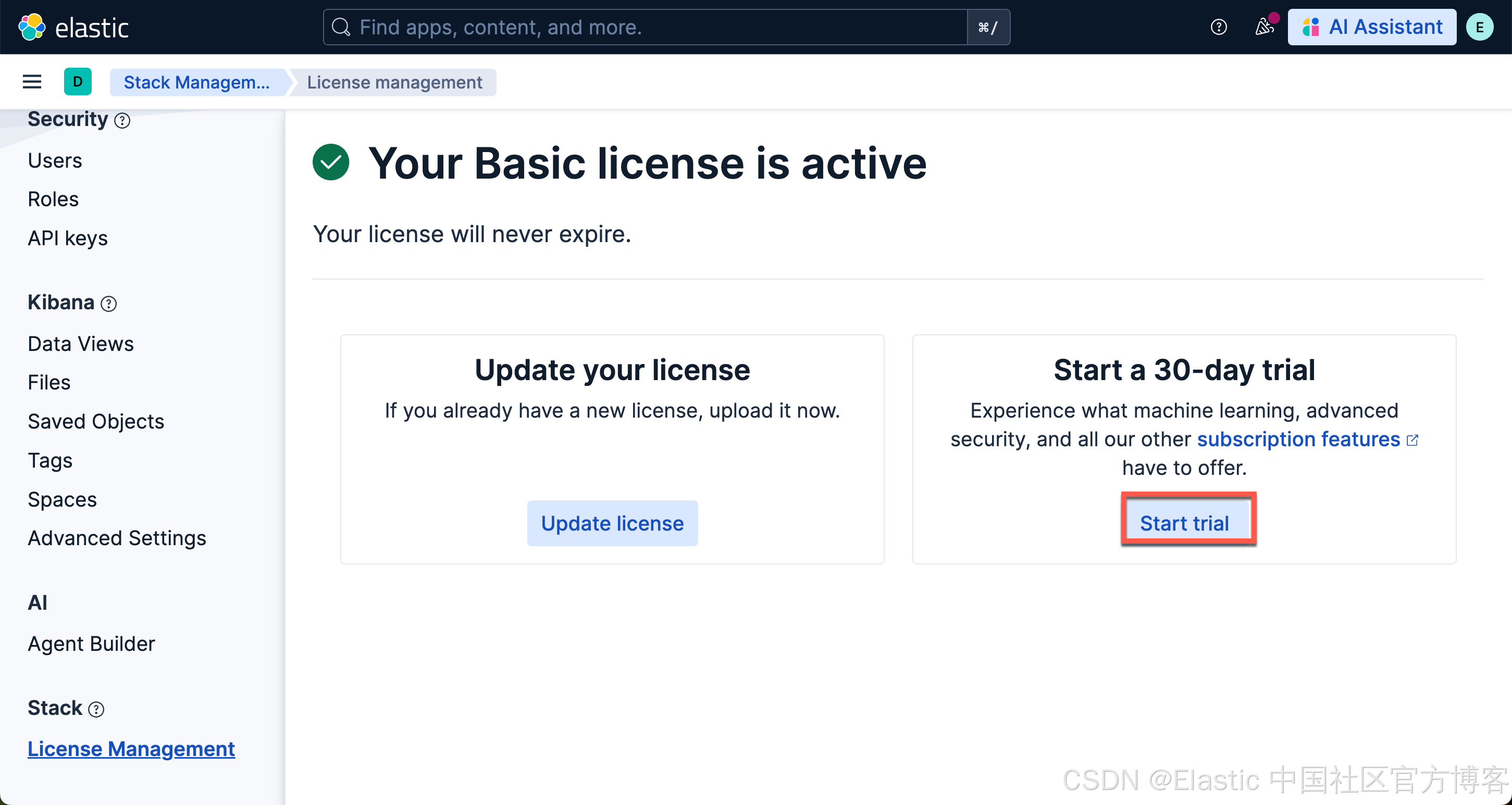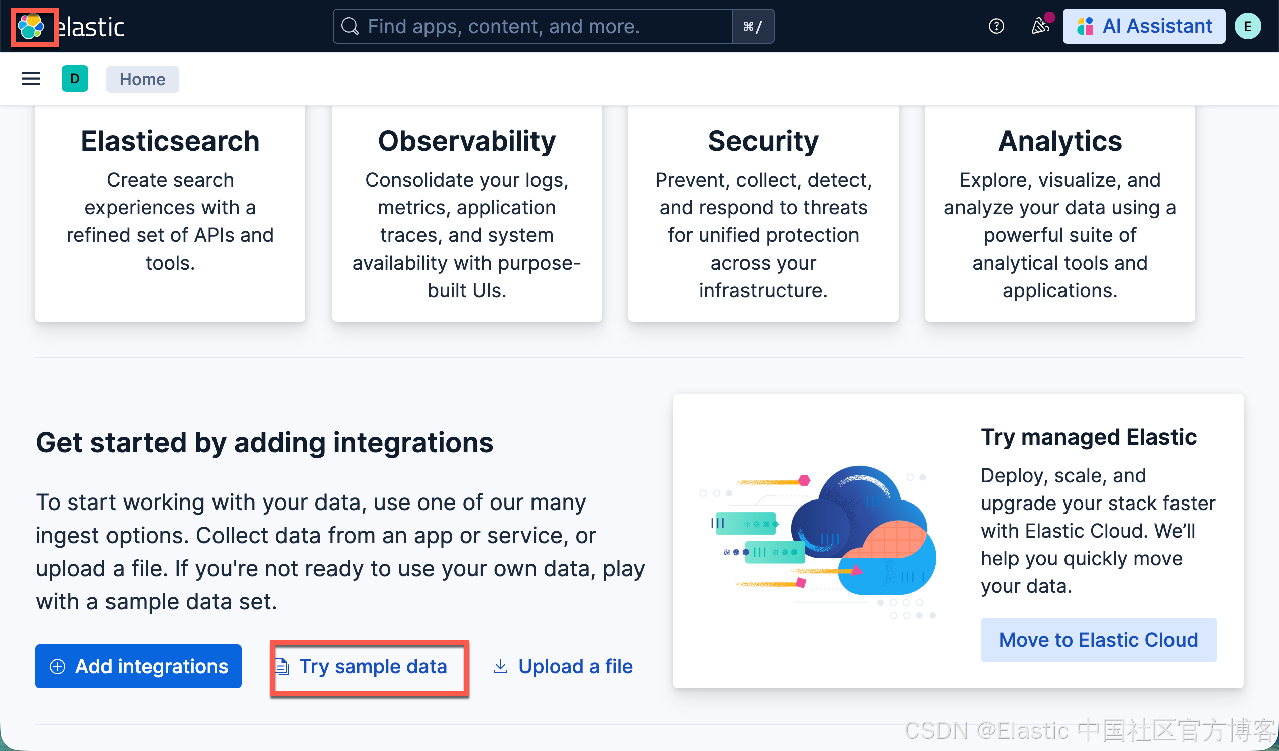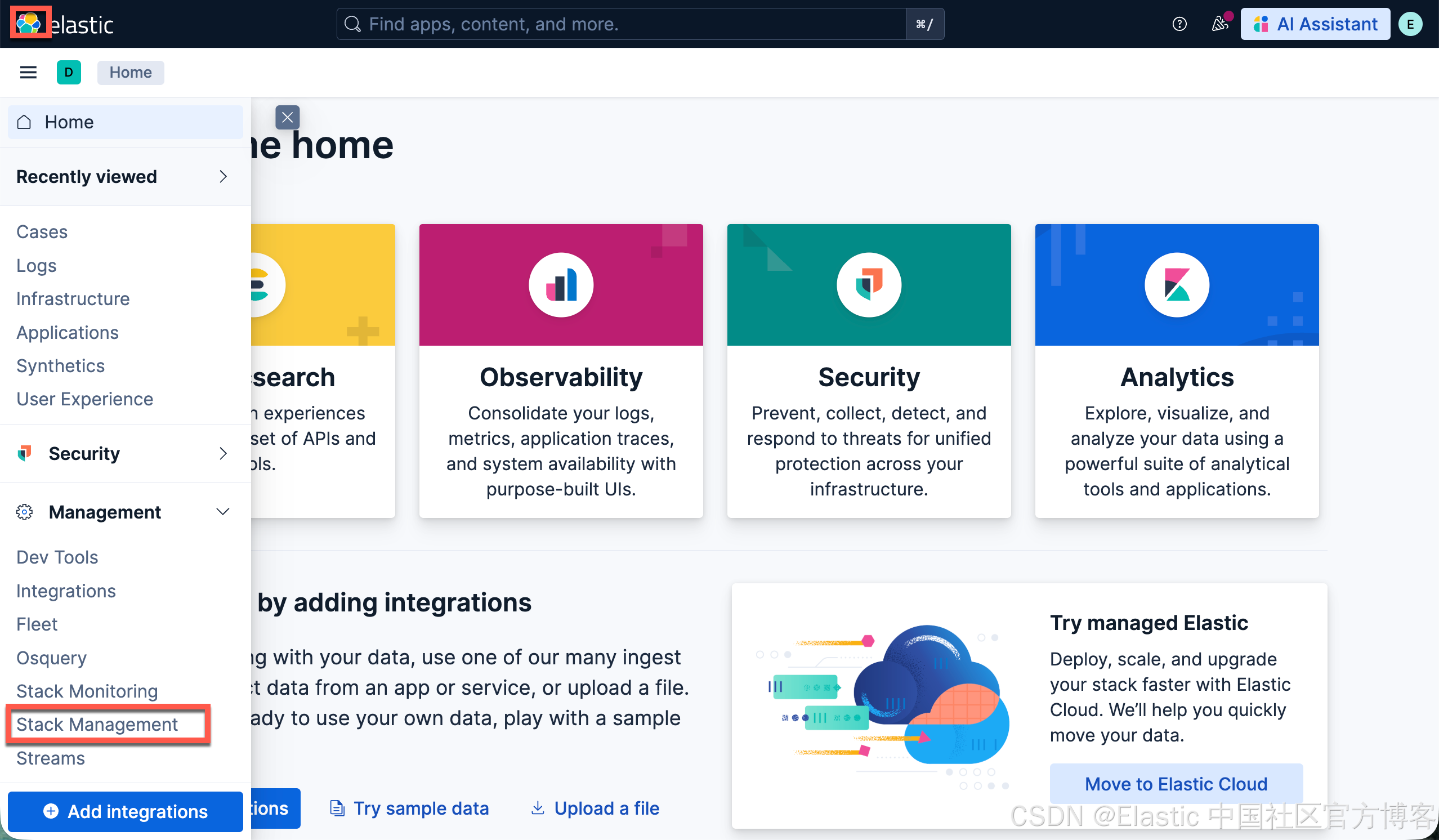 你可以在 Elastic clould 里直接创建一个实例来进行测试。UI 在不断地演进。各个版本的界面可能有所不同,但是最主要的功能还是一样的。在 Serverless 上的界面如下:
