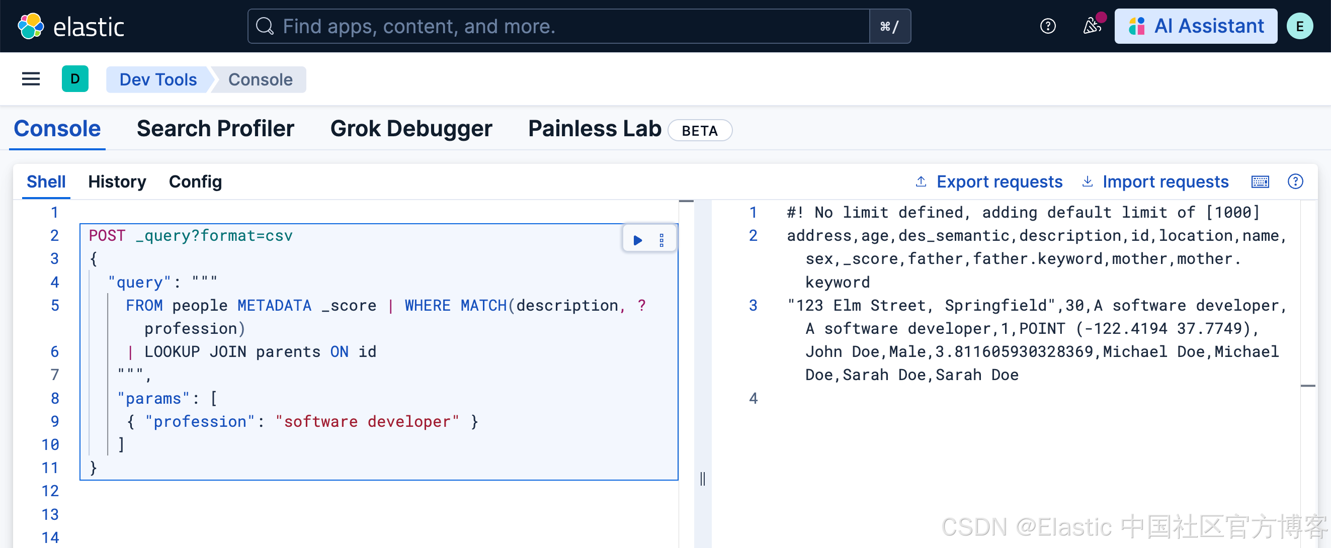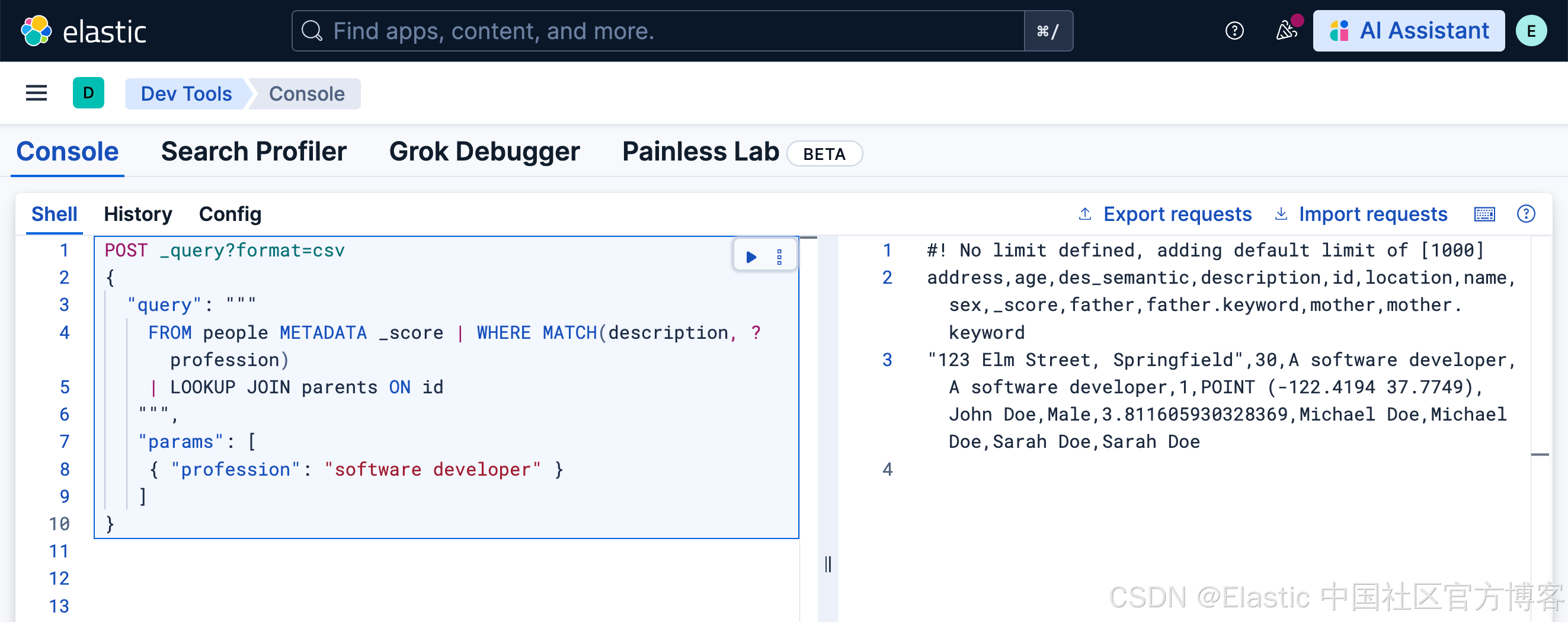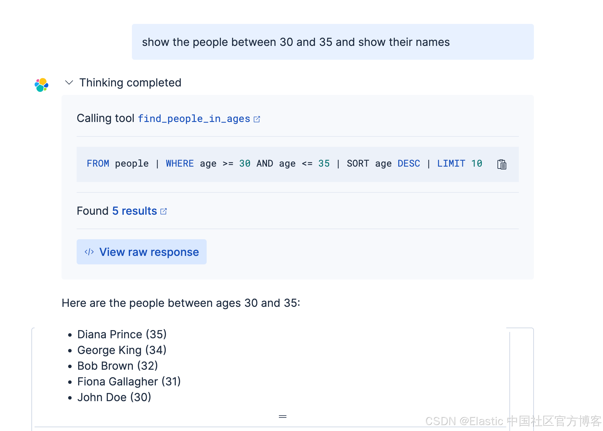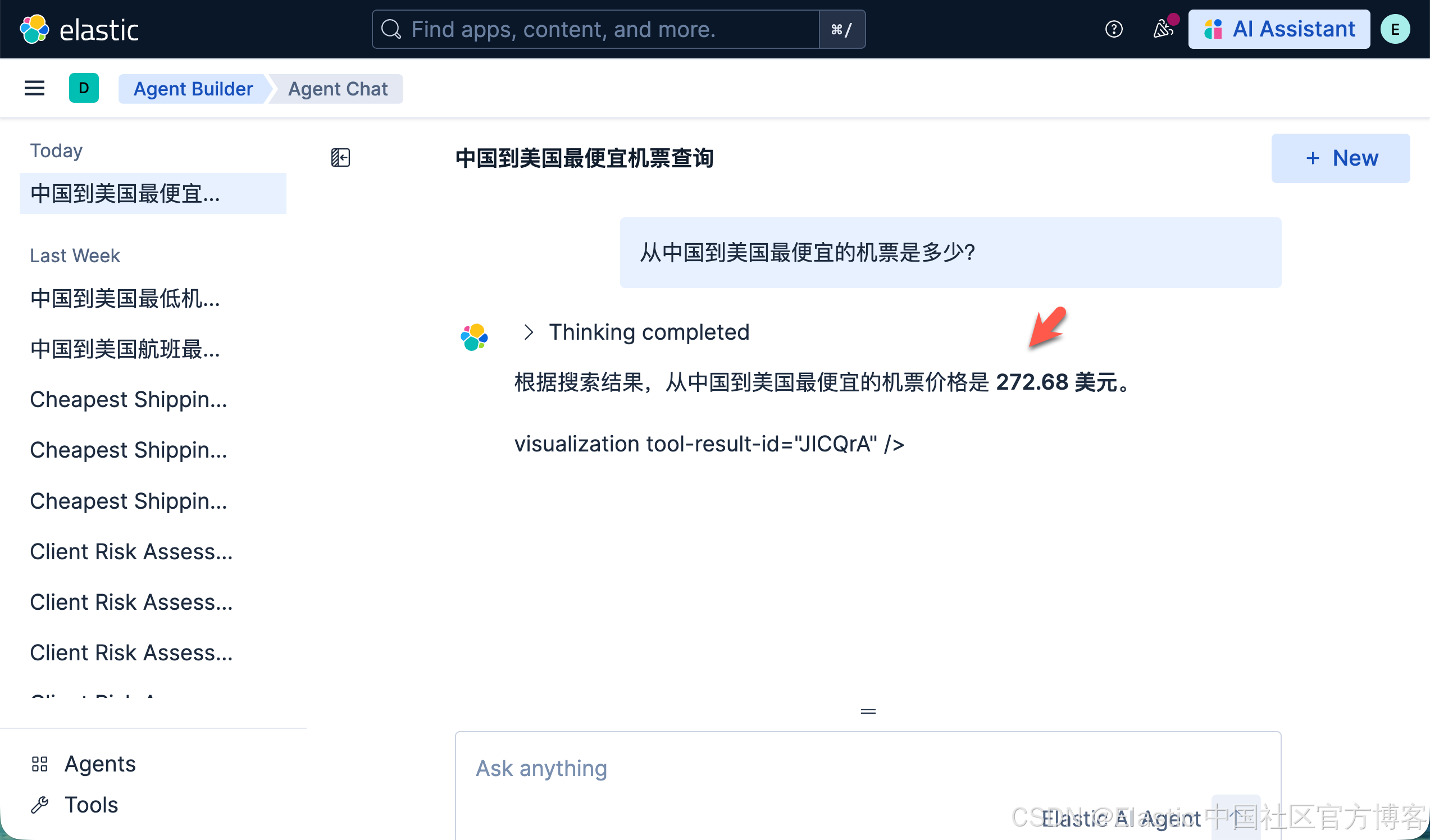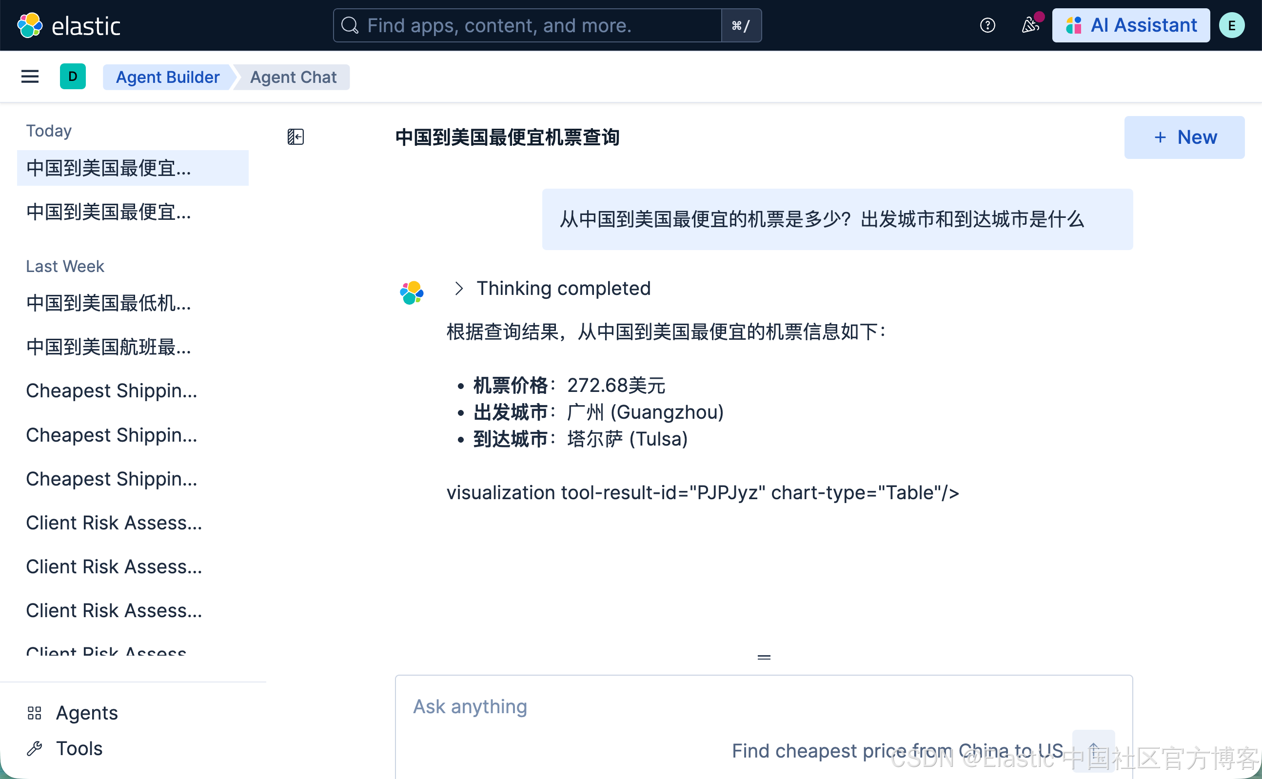 请注意,在上面,我们使用系统自带的 Elastic AI Agent 来进行查询: