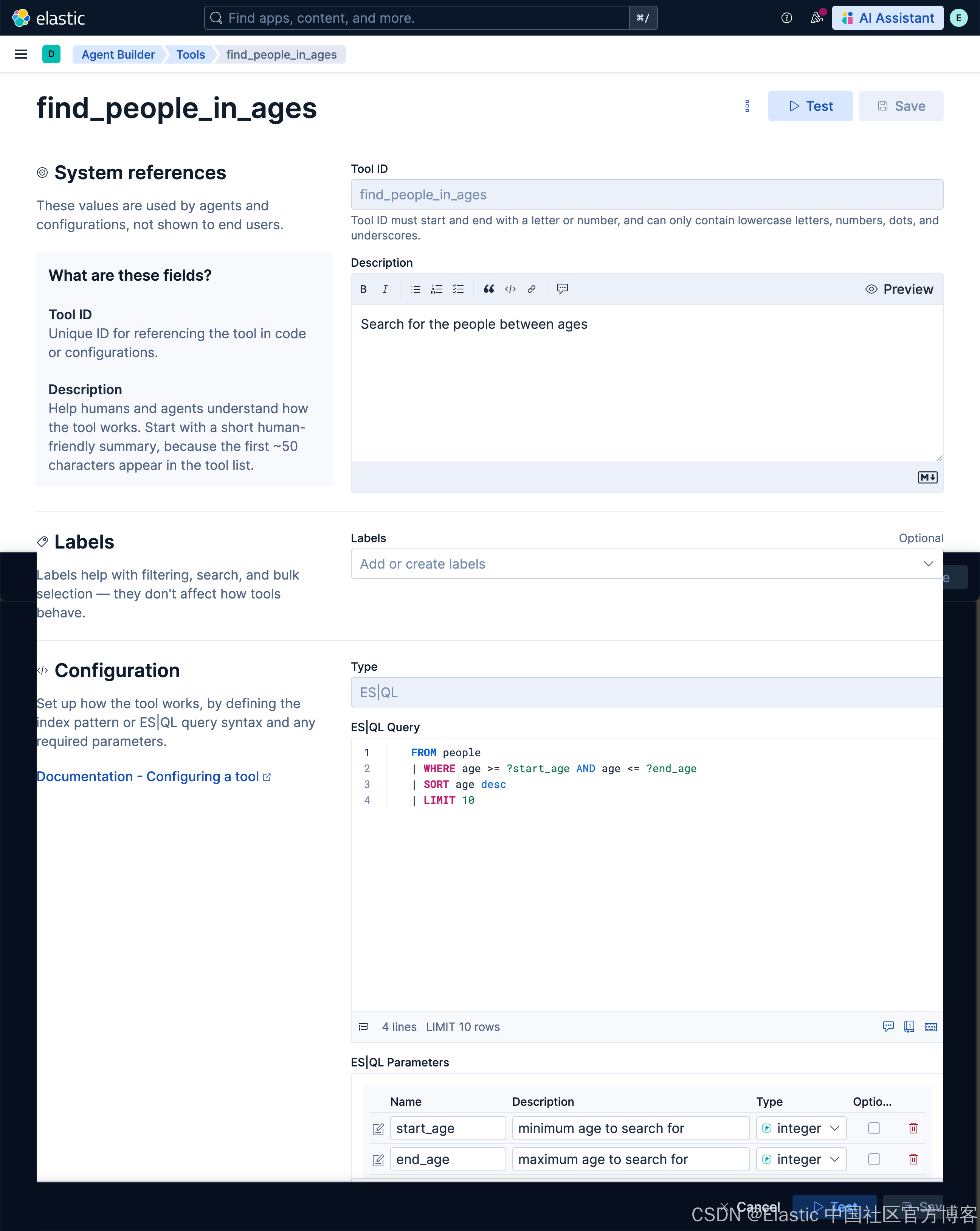 在这个查询里,我们想找到年龄在 30 和 40 之前的所有人。那么我改如何构建这个查询呢?首先,我们来创建一个叫做 find_people_in_ages 的 tool: