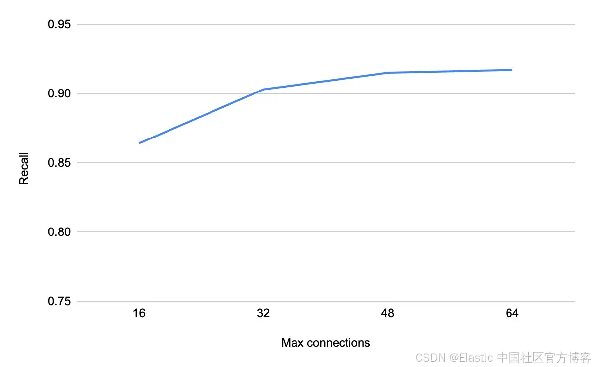 M:某一层中一个向量节点最多能与多少个邻居建立连接(Lucene,以及 Elasticsearch,默认值为 16)