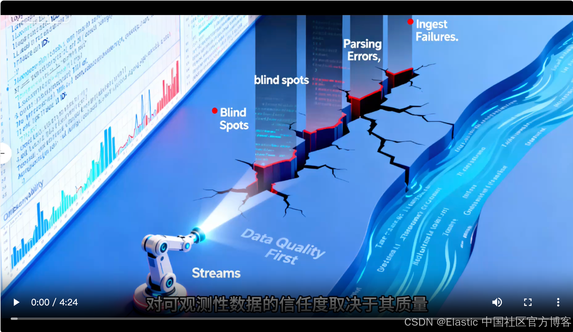 Streams 通过将数据质量置于首位来解决这个问题。在此演示中,我们将故意引入一个解析错误以产生摄入失败,然后使用“数据质量”选项卡查看 Streams 如何呈现和解释问题。最后,我们将修复错误,以展示问题如何在造成盲点之前得到解决。