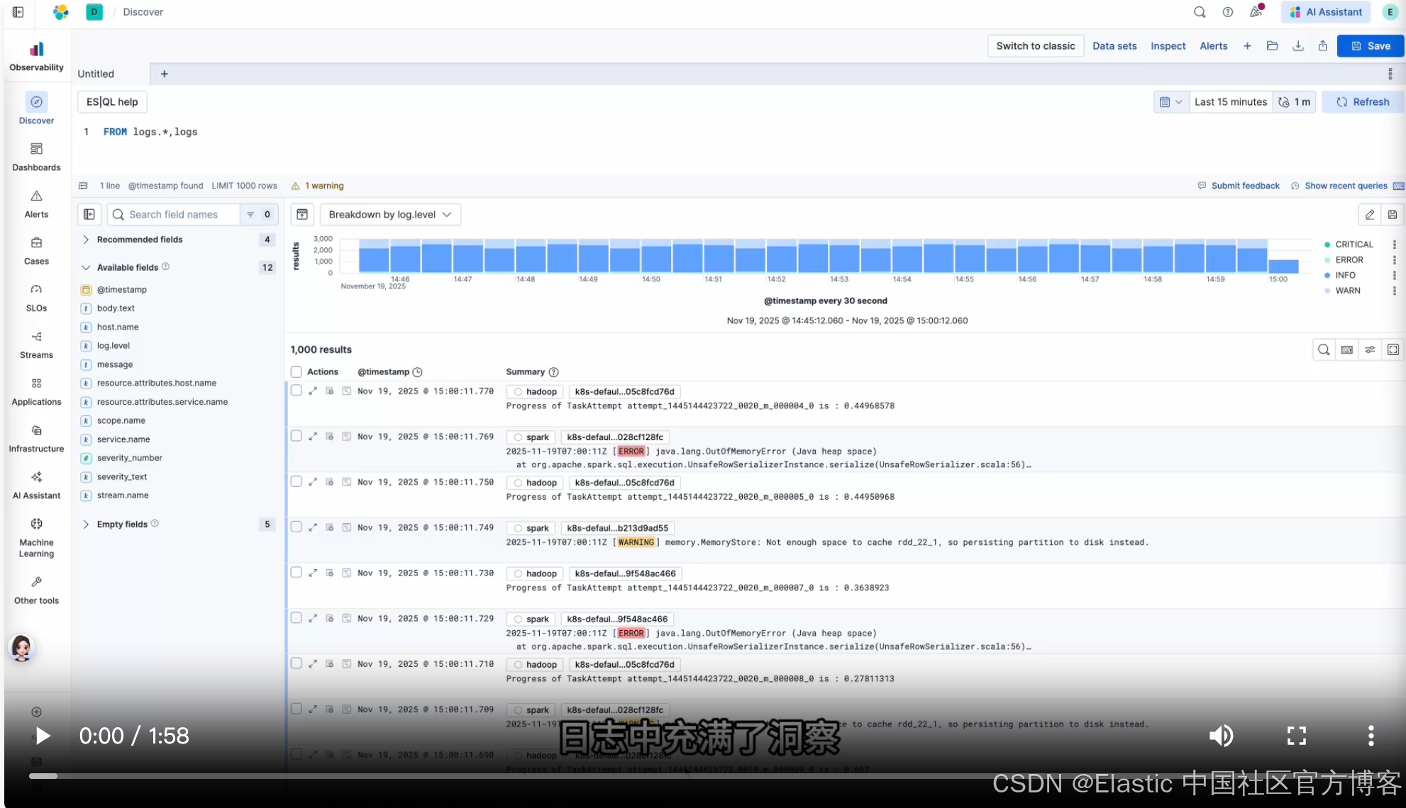日志的挑战一直是在噪音中找到重要的信号。在此演示中,我们使用 AI 识别 Spark 作为一个系统,在其日志中发现重要事件,并仅需几次点击就创建了一个警报。