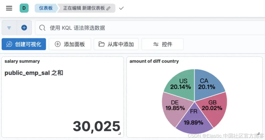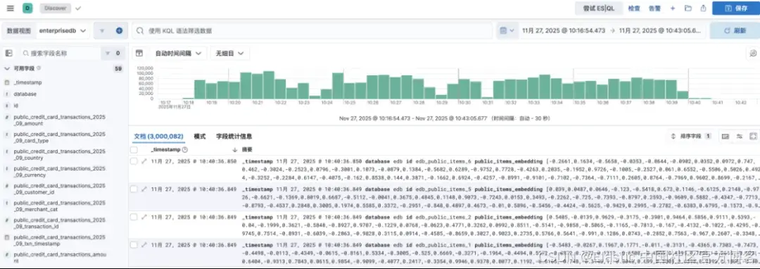 至此,通过 postgresql 连接器连接 enterprisedb 到 ES 的数据同步就成功了。接下来就可以在 ES 下进行数据分析和可视化操作了。