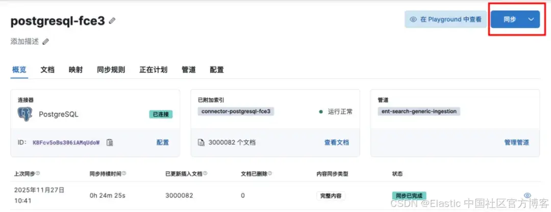 在连接器的下的文档页可以看到同步的内容: