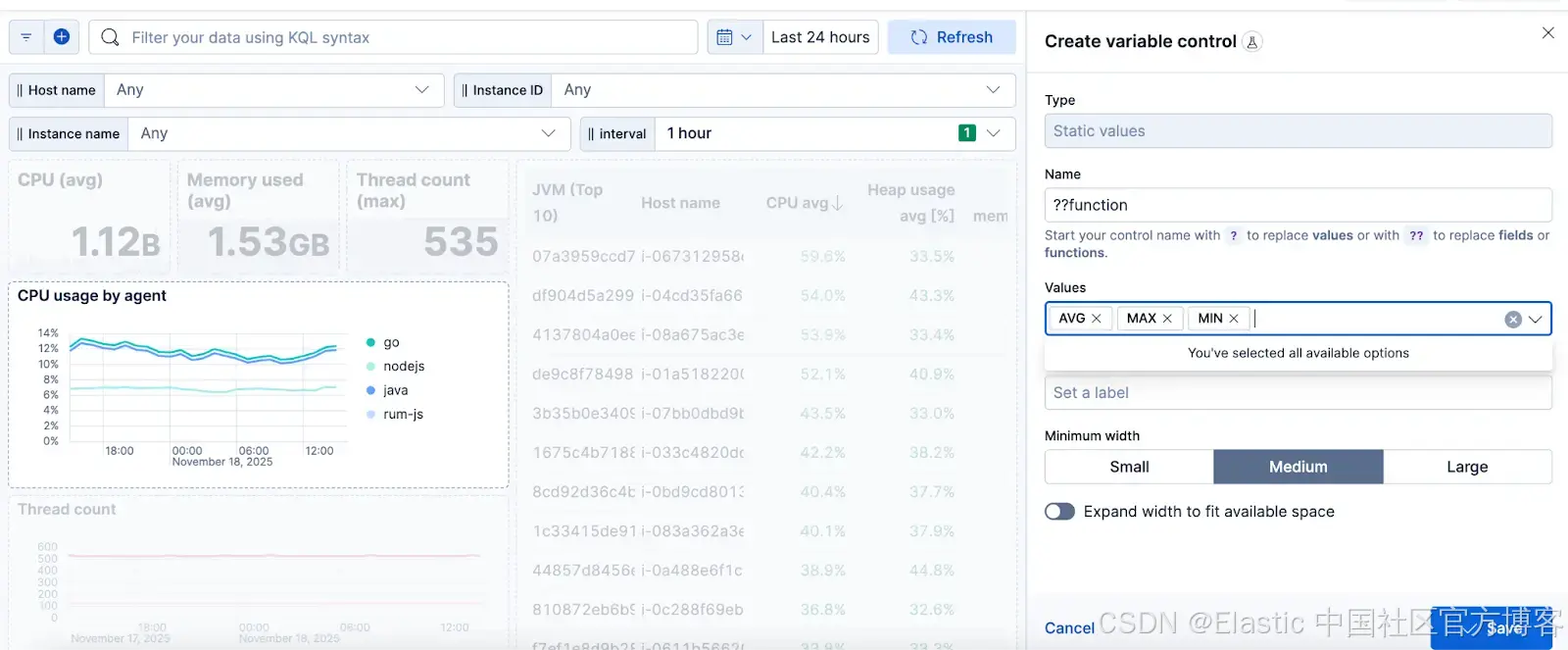 我们很高兴与你分享,从 8.18 版本开始以及所有 9.x 系列,变量控件现在已经在 Kibana 仪表板中可用!这个功能一直是仪表板用户最常请求的新增功能之一 —— 现在它终于来了 🎉 在过去的几个月里,我们持续扩展并优化变量控件,现在正是为它们推出专门博客文章的最佳时机。