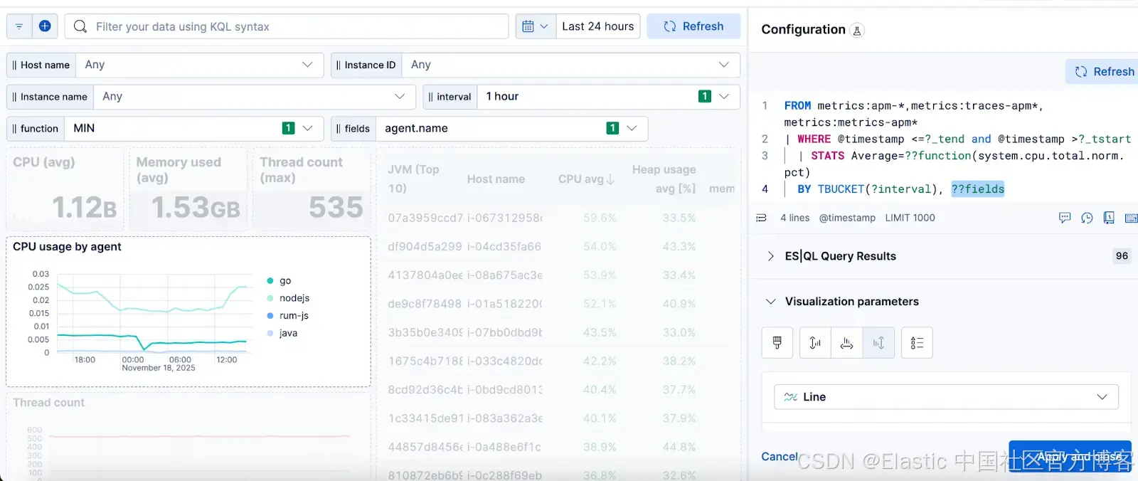 这种设计带来了几个重要优势。首先,Kibana 可以理解每个变量的上下文,从而为你自动生成并预填其配置。它也更安全:由于语言严格验证变量输入,它可以防止恶意注入,并在发现异常时优雅地报错。此外,通过将复杂的验证和错误处理移到服务器端而非客户端,还能提升性能和稳定性。关于性能的提示,最佳实践是构建包含快速查询的变量,因为它们会在仪表板加载前运行,慢查询可能会影响整个仪表板的性能。