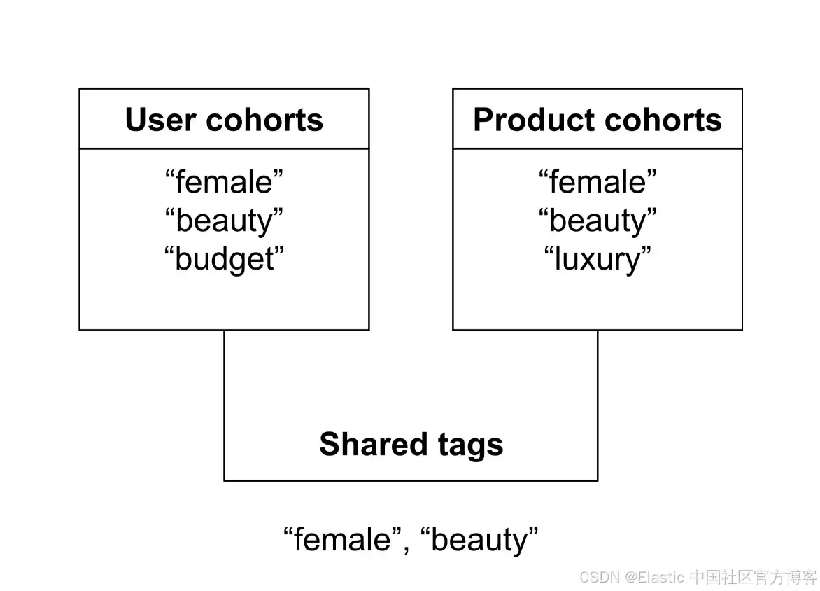 分群重叠就是用户/会话与商品之间共享标签的数量。没有加权,没有语义相似度 —— 只是简单的交集。例如,如果用户的 cohorts 是 ["female", "beauty", "budget"],而某款口红的标签是 ["female", "beauty", "luxury"],那么重叠数就是 2。