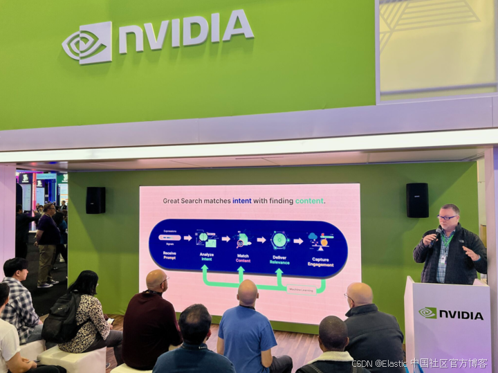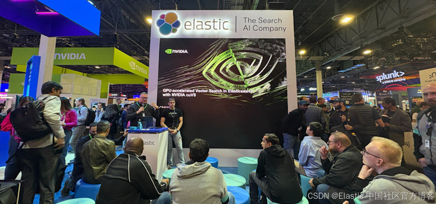我们邀请了多位合作伙伴在展会大厅的 Elastic 展位进行展示。除了 Accenture 对数据准备引擎的概述外,Gigamon 展示了基于 ML/AIOps 的 GenAI 洞察。NVIDIA 演示了在 Elasticsearch 中使用 NVIDIA cuVS 的 GPU 加速向量搜索,实现了最高 12 倍的向量索引加速。在 Confluent 展位,我们展示了 Elastic 检索与 Confluent 流结合实现的实时规模化能力。
