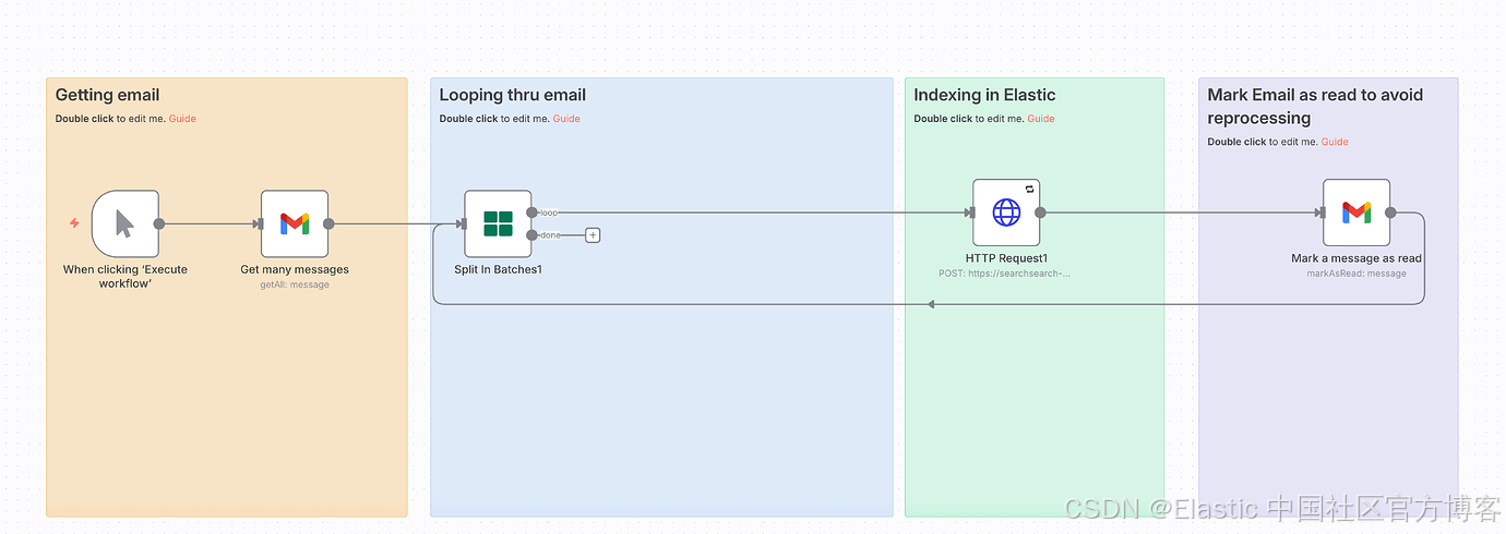 在成功索引后,工作流会在 Gmail 中将邮件标记为已读,以防止重复处理。这种模块化设计遵循 n8n 最佳实践,通过分离关注点并允许每个组件独立测试。
