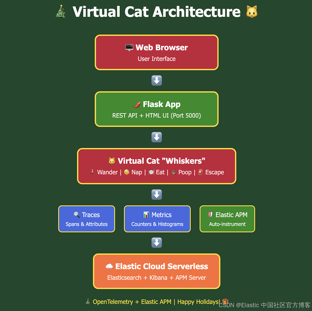 在现代观察性中,最迷人的部分之一就是它的多功能性。虽然我们通常提到物联网来监控非生物系统,但同样的原理也可以应用到有机的、活的系统。那我们的宠物、牲畜,甚至家里的植物呢?就像圣诞老人需要追踪哪只驯鹿需要休息,哪位精灵工作最快一样,无论是生物系统还是非生物系统,现代系统都需要观察性来理解它们的功能。这些活的系统是自主且不可预测的,通常不遵循确定性脚本,使它们成为观察性的理想对象。在本文中,我们将认识 MeowPy,我的虚拟猫,监控它的吃饭、睡觉,甚至可能还有逃跑尝试。