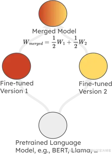 这个 tutorial 由 Marco Ciccone 、 Malikeh Ehghaghi 和 Colin Raffel 主讲,特别有意思。过去几年里, model merging 已成为一种被广泛使用的技术,用于在针对特定 applications 进行 fine-tuning 时提升 AI models 的鲁棒性(robust)。在最简单的情况下,它通过对源自同一个 base model 的两个或多个 fine-tuned models 的 weights 进行平均来将它们组合在一起,如下图所示: