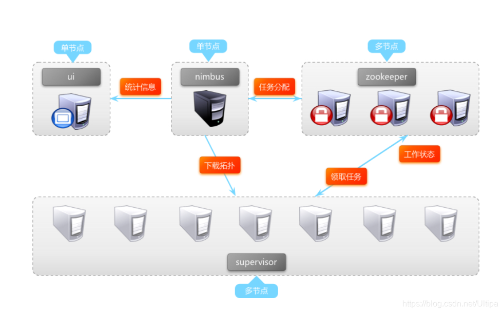 图:storm集群在生产环境部署之后,通常会是如下的结构