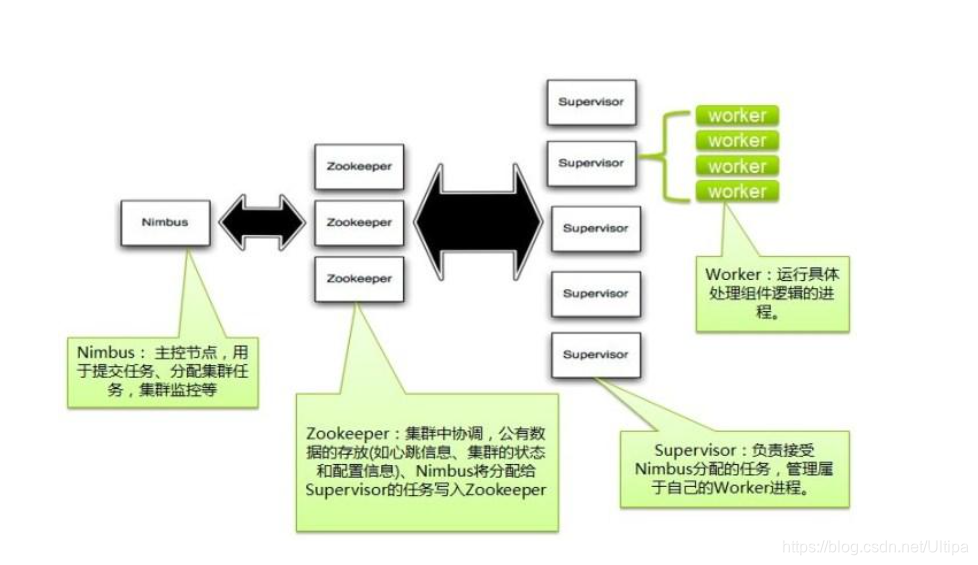 Worker节点上运行的守护进程叫Supervisor,负责接收被分配的任务,启动或停止Worker进程等。每个Worker进程处理一个topology的子集,一个topology可以包含可能跨多台机器的多个Worker进程。