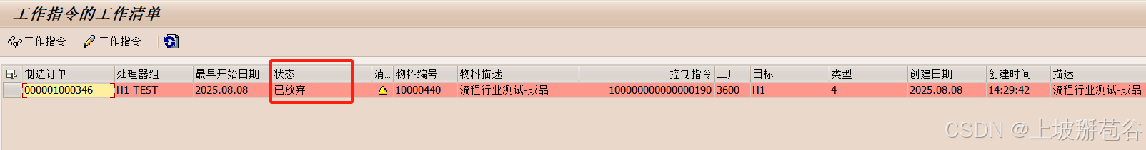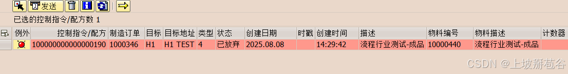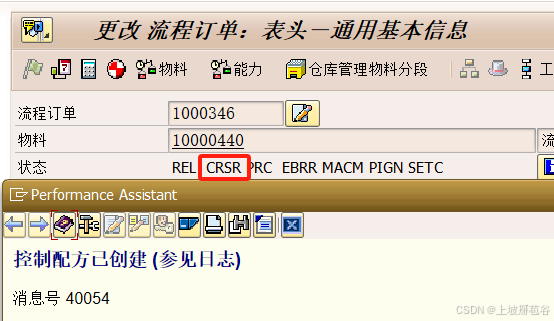 重新生成控制配方后,订单状态从CRAB变回了CRSR
