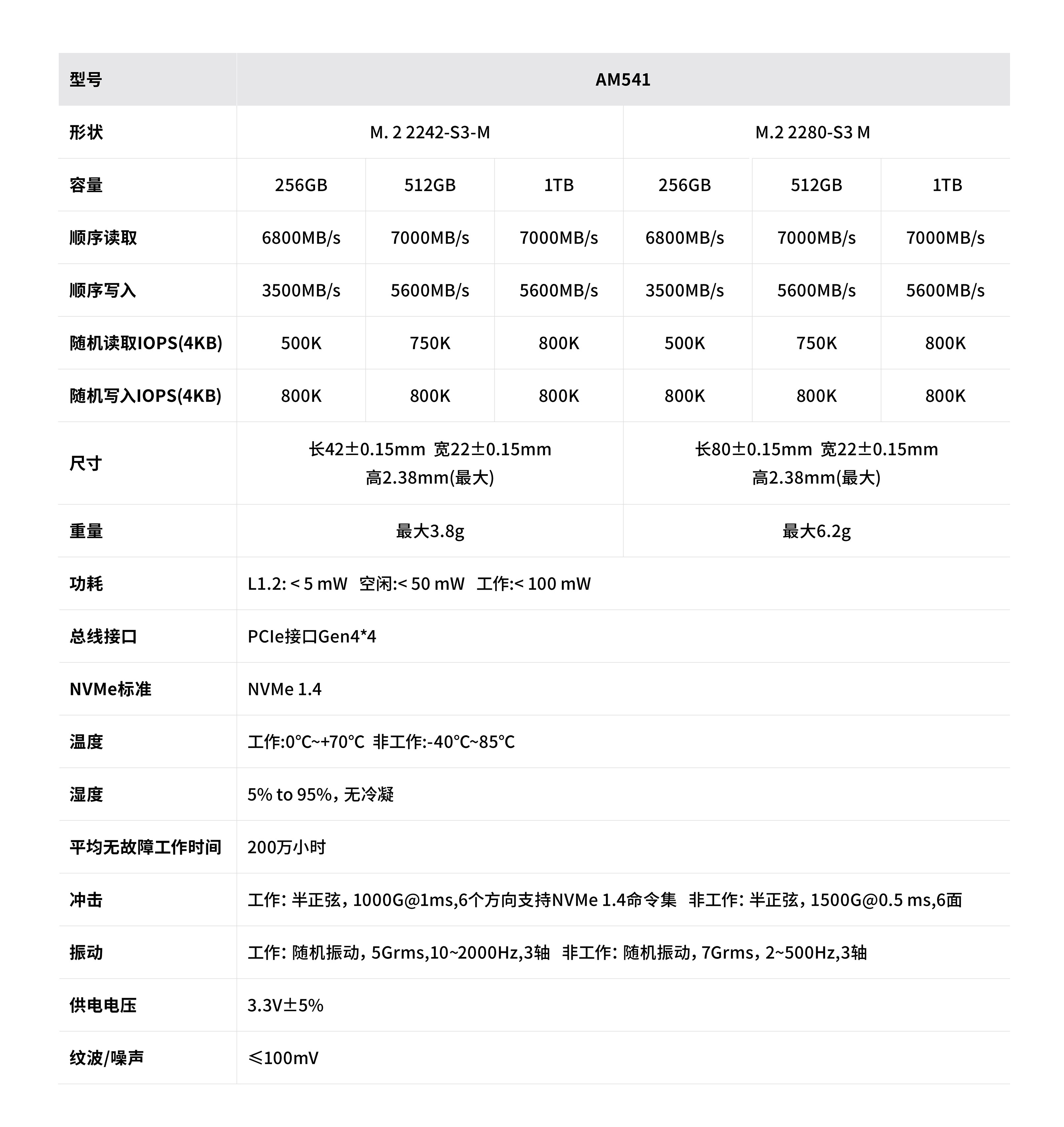 l 尺寸规格:采用M.2 2280和2242的规格设计,小巧的外形尺寸使其能够方便地安装在各种支持M.2接口的设备中,如台式电脑主板、笔记本电脑等,适应不同用户的硬件升级和安装需求。
