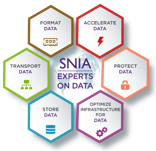 SNIA(Storage Networking Industry Association)是一个非营利组织,负责制定国际标准和规范。SNIA推广与数据存储、传输、基础设施优化、加速、格式化和保护相关的技术。下图是SNIA对数据格式、传输、保护等定义以及后续发展方向的研究。
