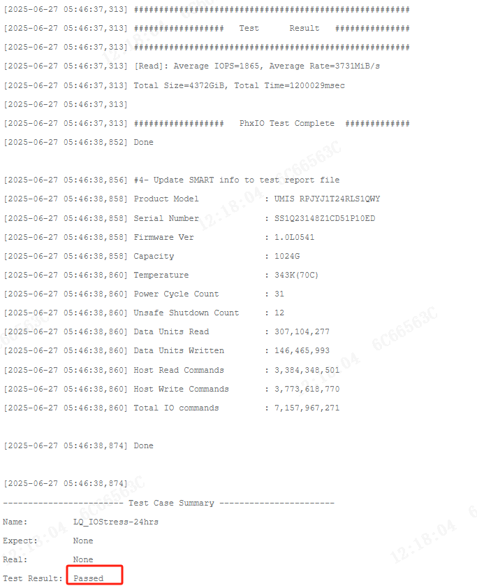 为了验证AM541在各类压力场景下的表现,评测遵循JEDEC 219标准,对其进行了为期24小时的严苛压力测试,测试结果全部通过。