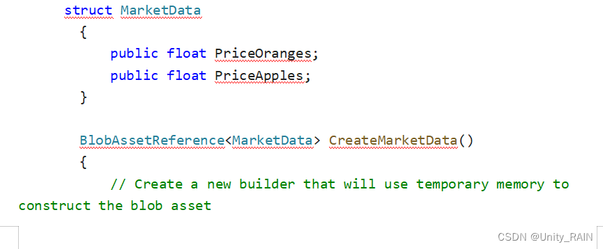 A: 创建一个BlobAsset,你需要先生成一个BlobBuilder,来帮助你处理计算每个数据在内存种的偏移;