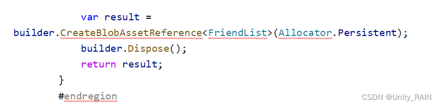 总结:使用BlobBuilder来生成BlobAsset,基于BlobAssetReference来高效访问里面的数据。