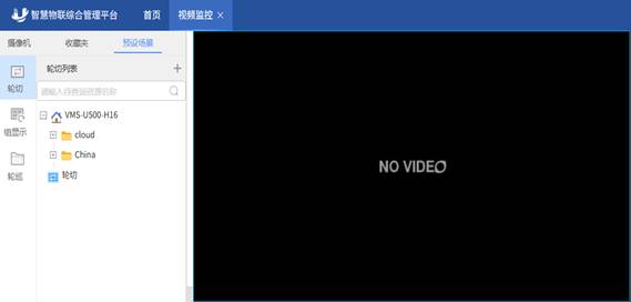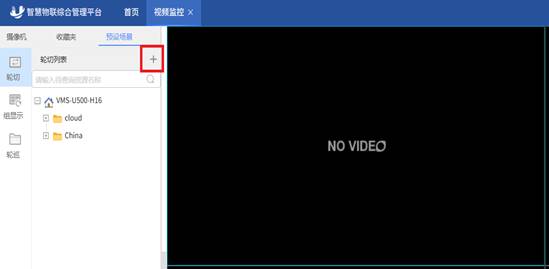 进入VMS-U视频监控-预设场景-轮切界面,点击右上方的“+”,弹出添加轮切窗口;