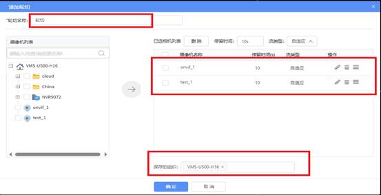 输入轮切的名称、选择需要轮切的相机及保存的组织,点击确定。