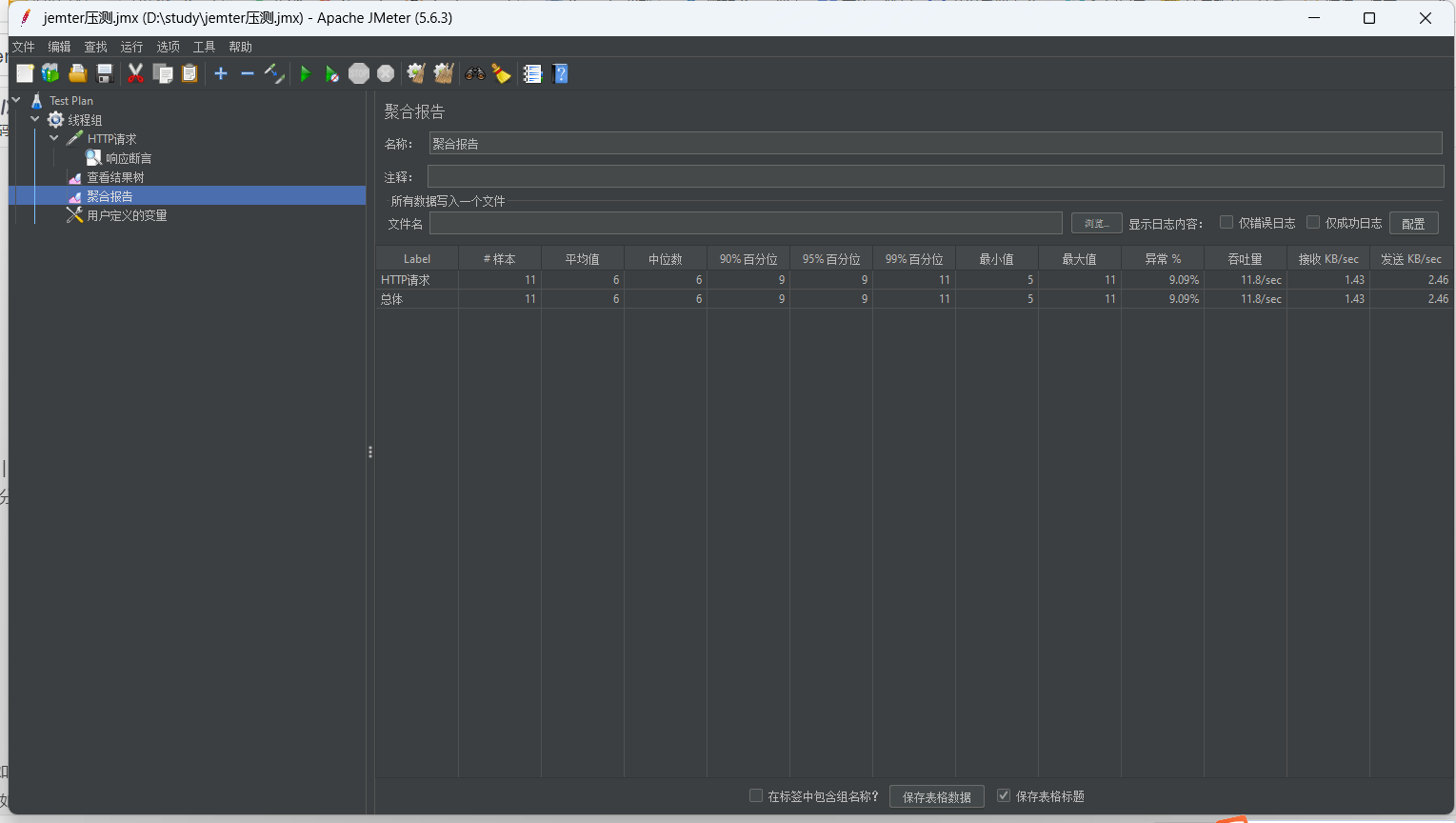 - 聚合报告:查看性能指标(吞吐量、响应时间等)