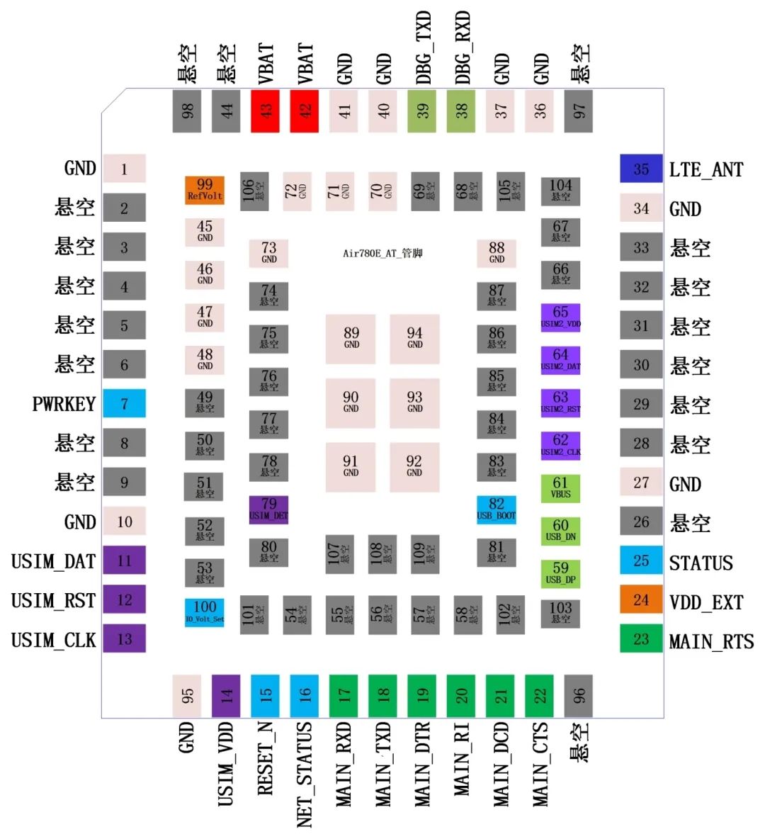 Air780E模组SIM卡信号相关管脚,详见下方图表: