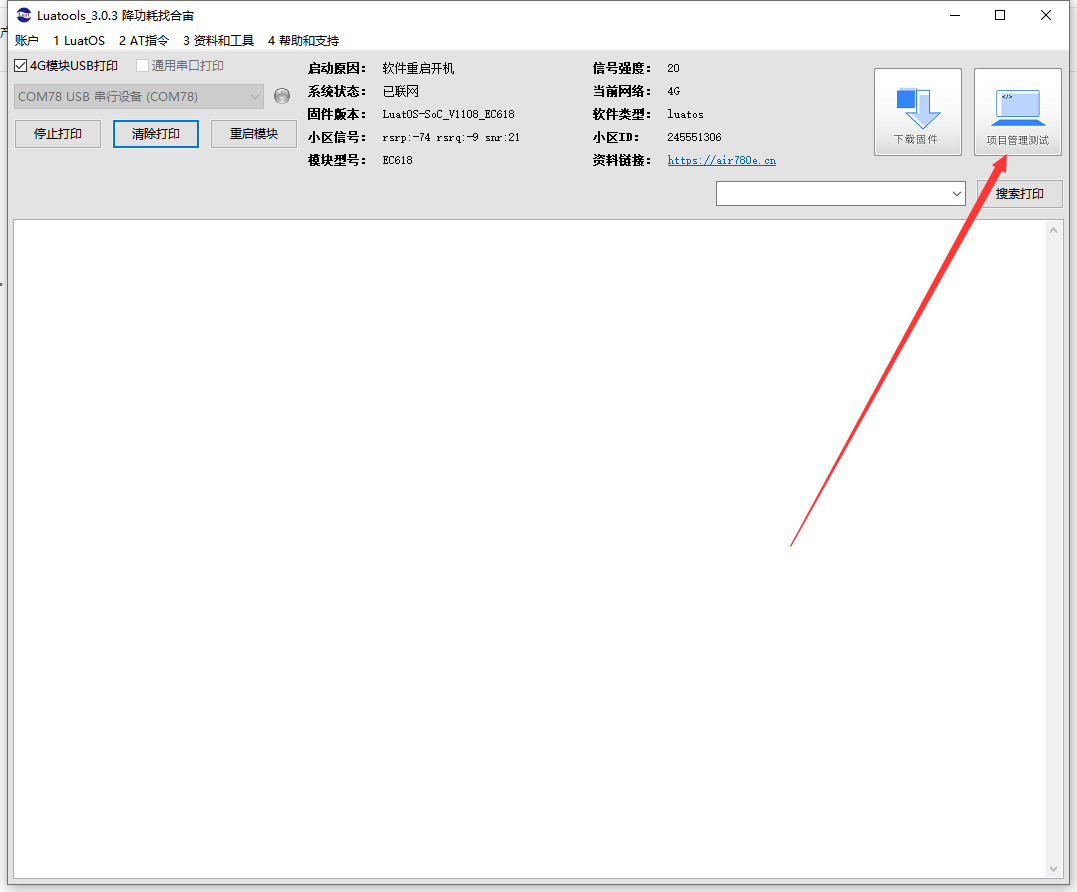 2.1 打开Luatools,点击项目管理测试