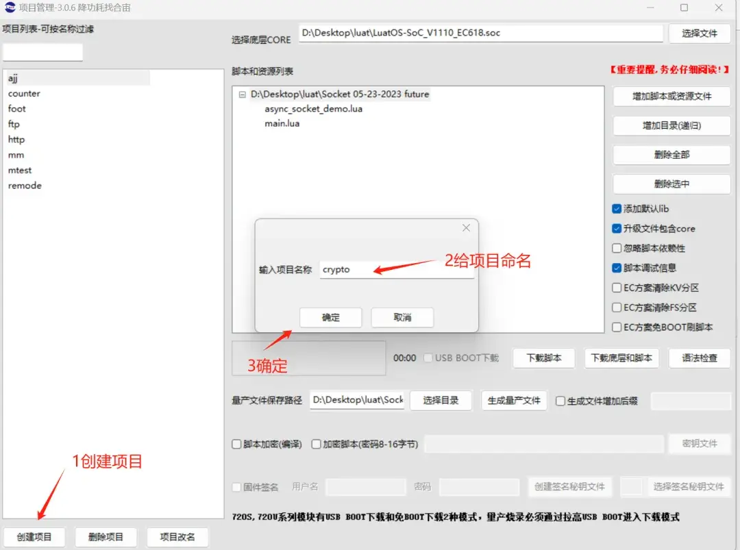 固件与脚本烧录:便捷地将固件及脚本文件烧录至目标模组中.