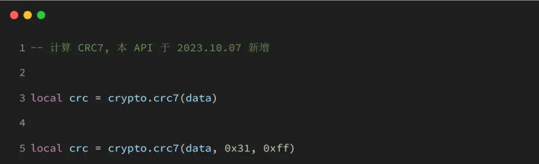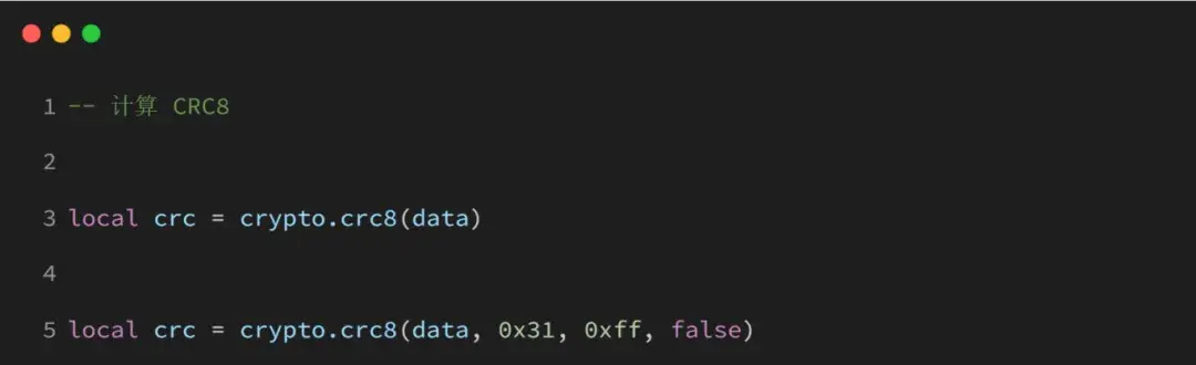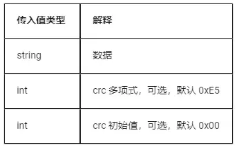 5.18 crypto.crc8(data, poly, start, revert)