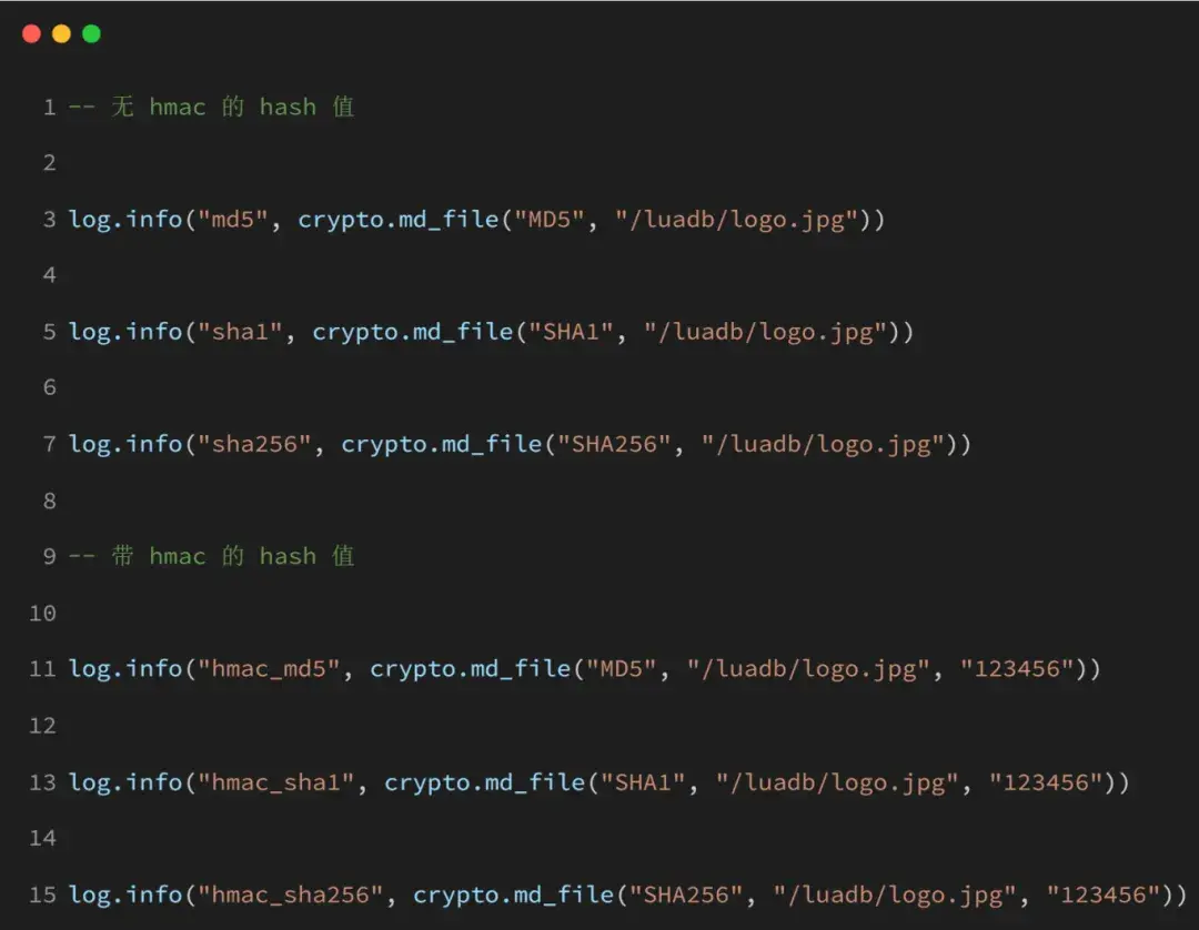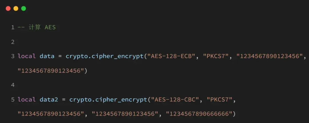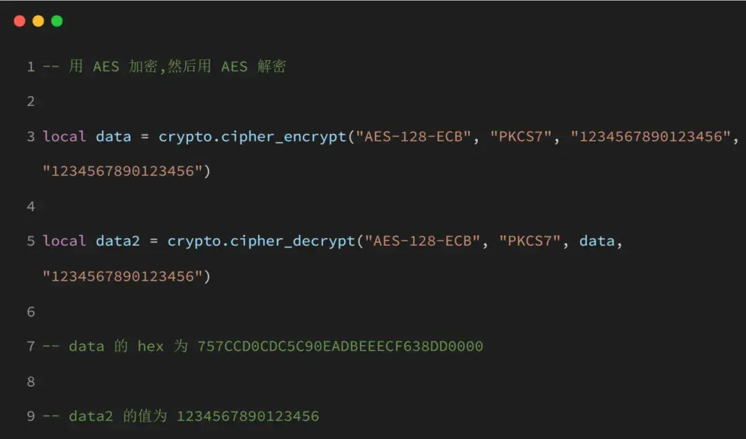 参考以下示例,本库有专属 demo,复制链接查看 crypto 的 demo 例子:(https://gitee.com/openLuat/LuatOS-Air780E/tree/master/demo/crypto)