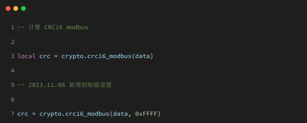 5.16 crypto.crc16_modbus(data, start)