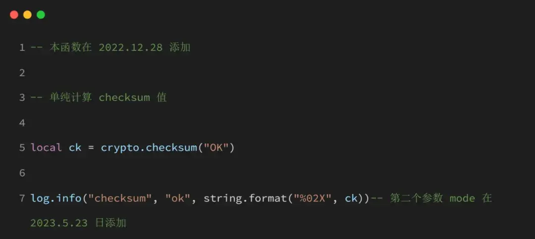 5.20 crypto.checksum(data, mode)