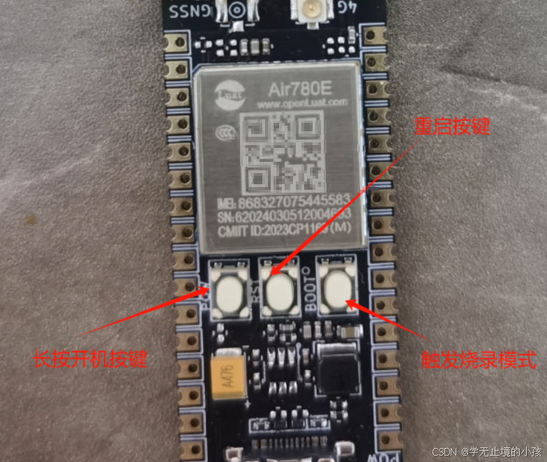 2、当我们模块开机时,按着 BOOT 键然后点按重启键即可。