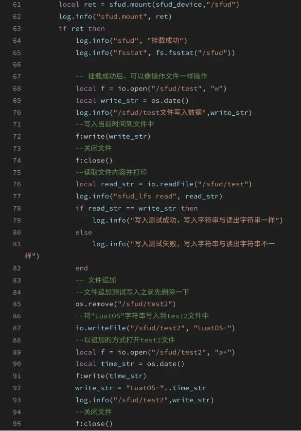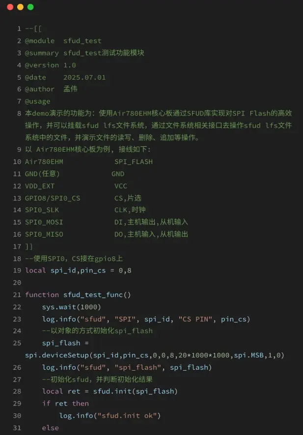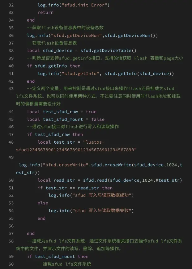 sfud_test.lua代码如下图示,完整demo详见源码仓库。