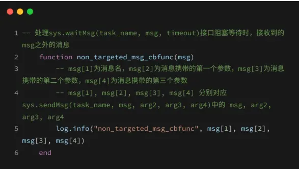 参数含义:task的处理函数中使用:sys.waitMsg(task_name, msg, timeout)接口阻塞等待msg消息时,接收到msg之外的其他消息时的回调函数。