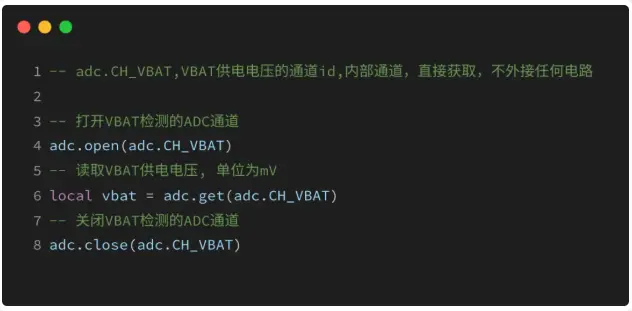 Air8101内部占用了一路ADC,用于检测VBAT引脚的电压: